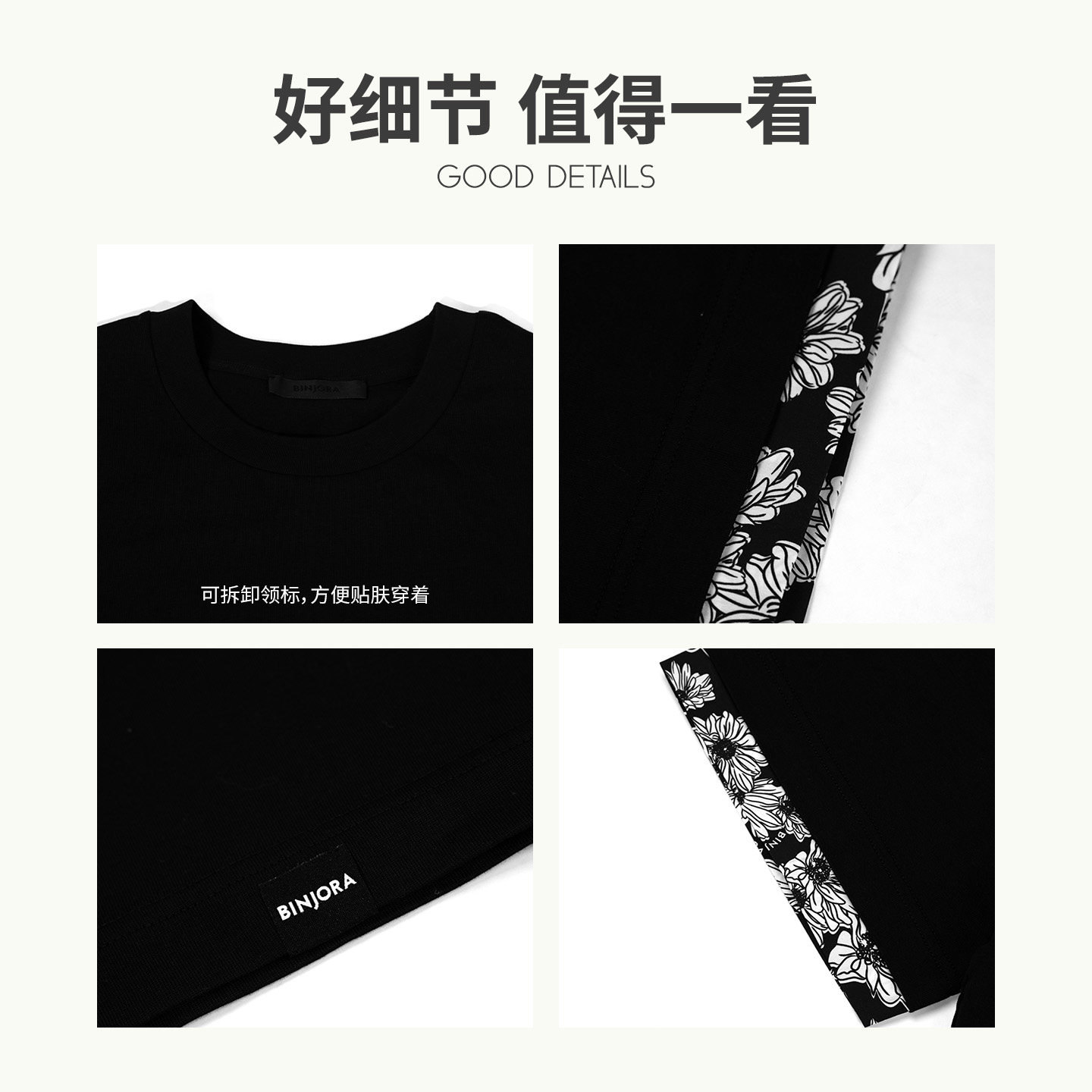 BINJORA冰洁2026春夏新品男女同款小雏菊拼接宽松T恤