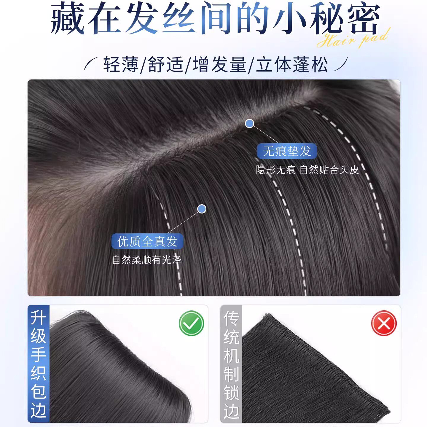 假发女片头顶增发量蓬松高颅顶真发垫发片一片式隐形无痕补发神器