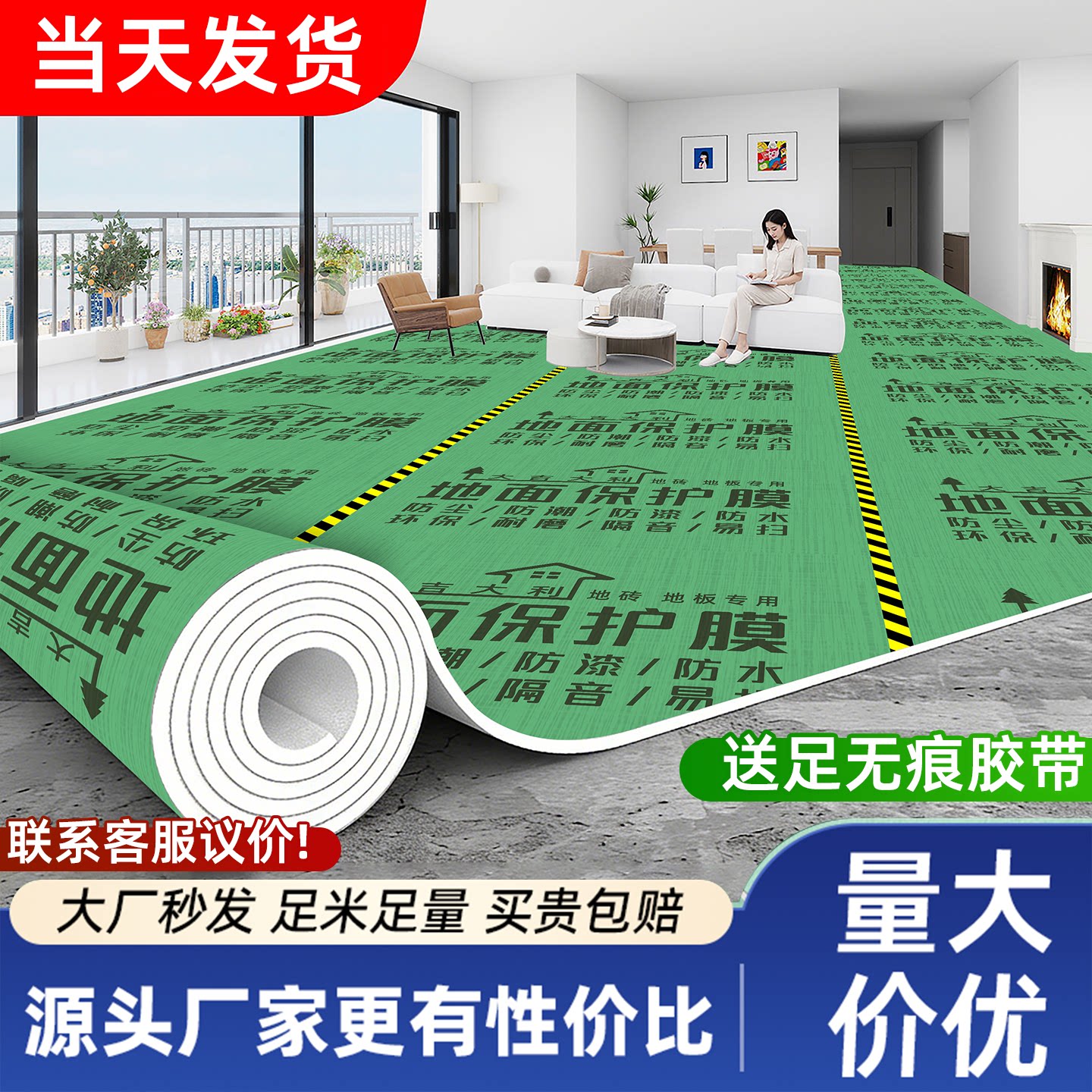 装修地面保护膜地砖瓷砖地板地垫地膜防护膜家装铺地一次性防潮膜