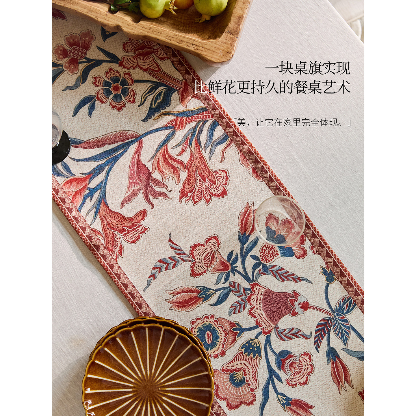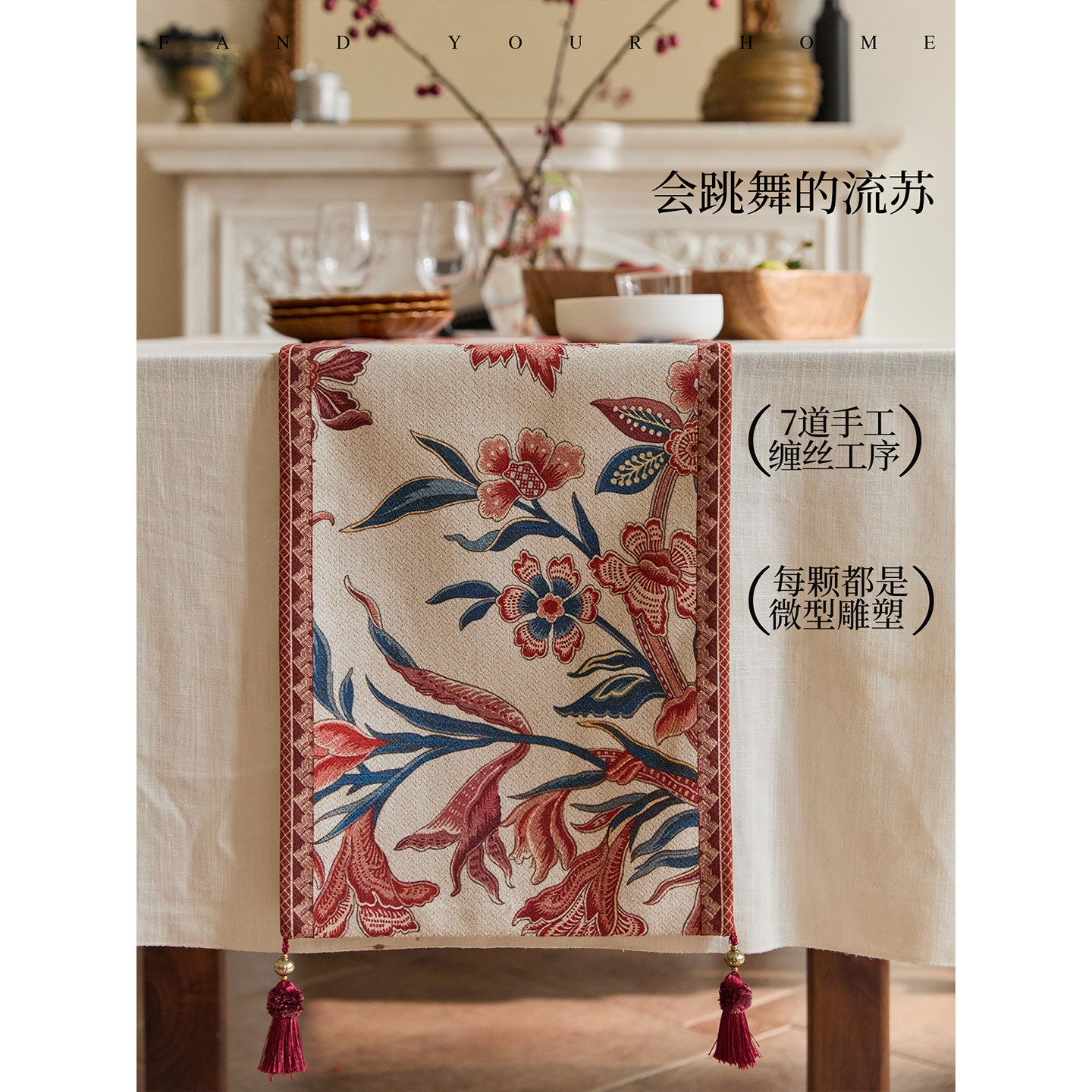 【孤品】蜡笔派连枝芙影桌旗复古高级氛围感餐桌边柜盖布茶旗定制