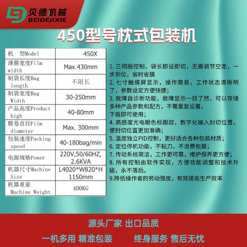 全自动450型号枕式包装机自动套袋蔬果五金食品玩具