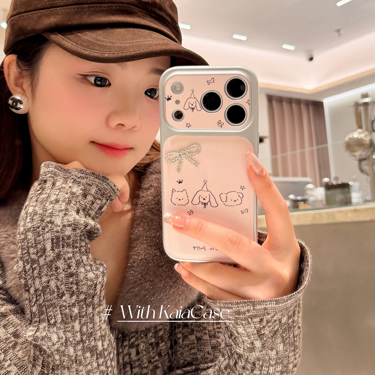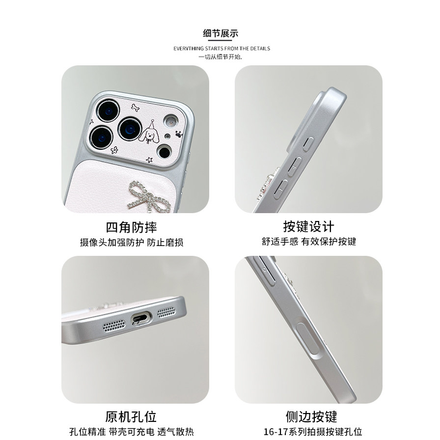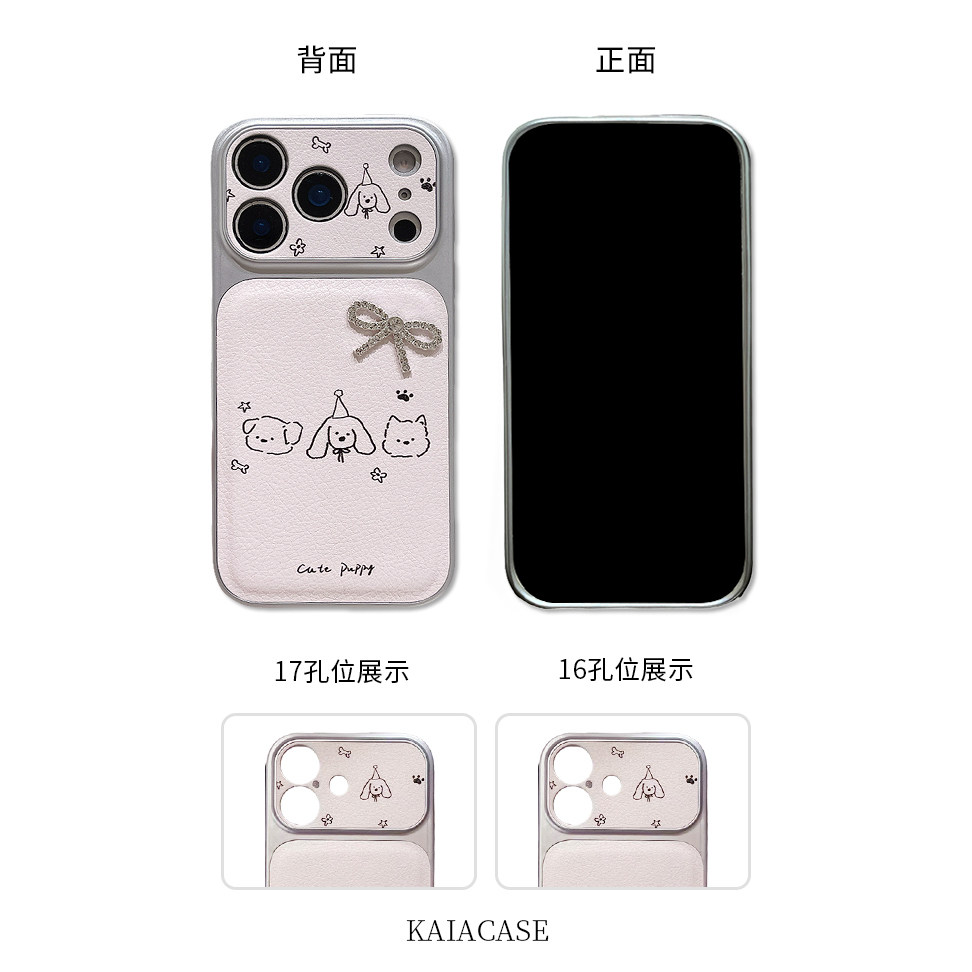 kaia甜美ins粉水钻蝴蝶结简绘狗狗适用苹果17promax手机壳iphone16pro新款17女14pro创意15pro全包防摔手机套