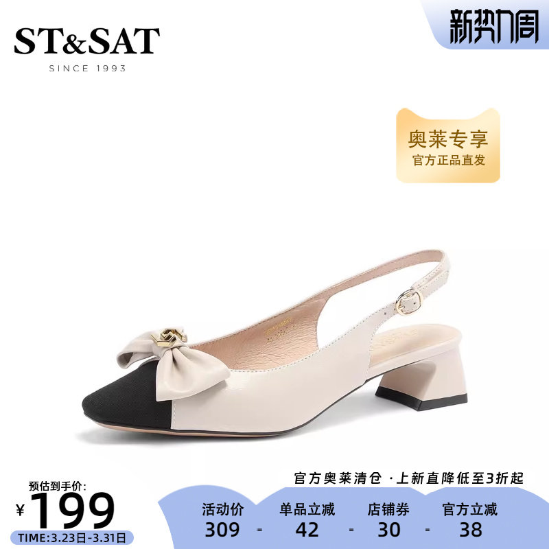 星期六时装凉鞋新款中粗跟后空包头甜美小香风单鞋SS31114447