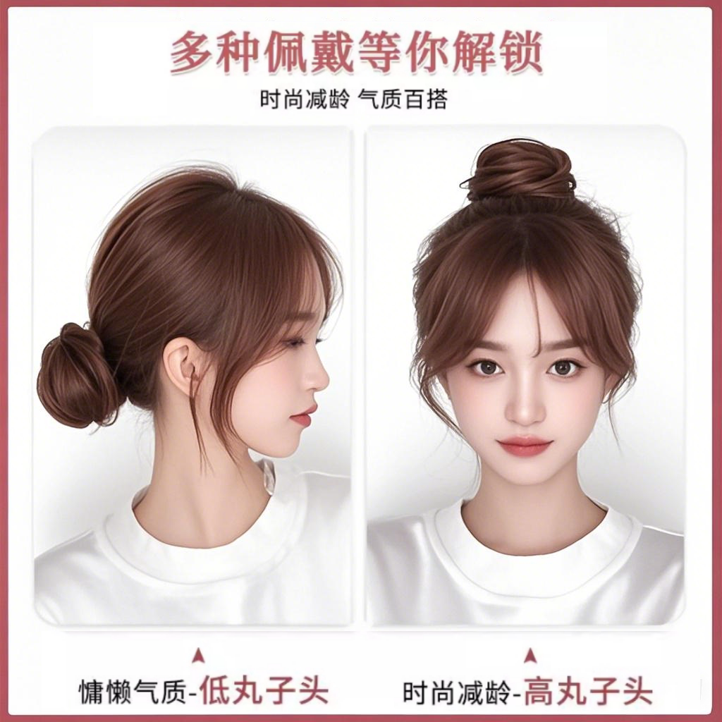 低扎丸子头假发鸡毛头抓夹盘发发包慵懒感造型头饰自然蓬松后脑勺
