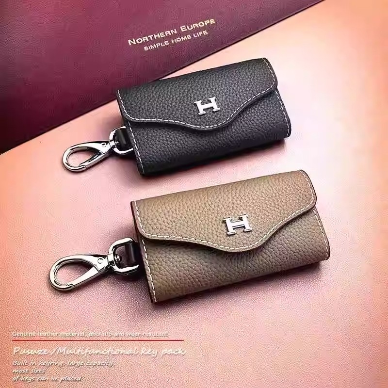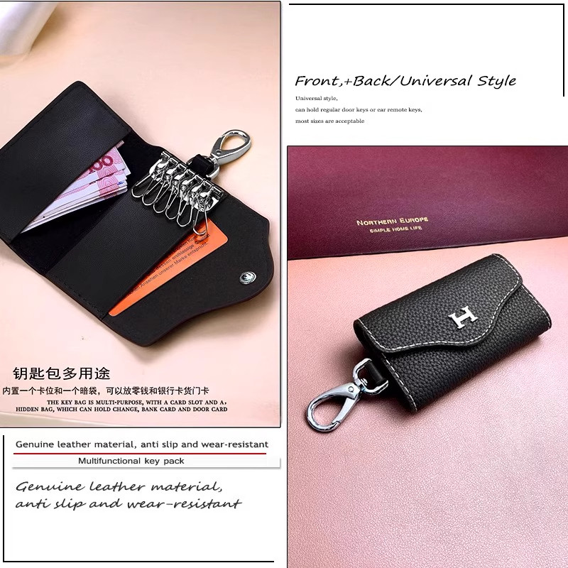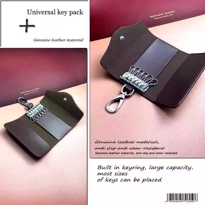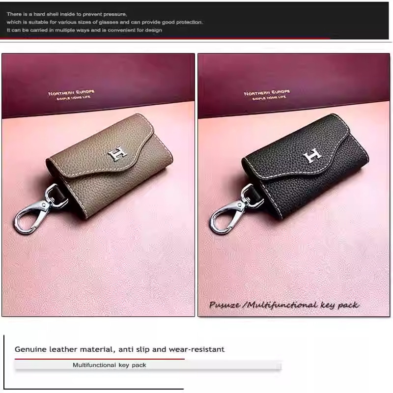 新款真皮质感男女多功能锁匙包复古简约汽车钥匙包收纳包钥匙挂扣