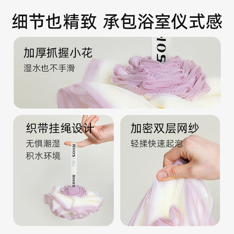 RHOS沐浴球高档不散洗澡泡泡球特大号超柔软女士专用浴花2025新款