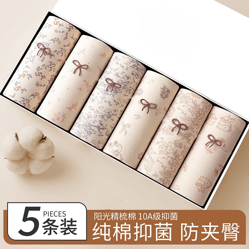 内裤女生纯棉抗菌100%全棉裆2023新款日系无痕透气女士中腰短裤