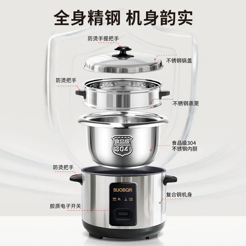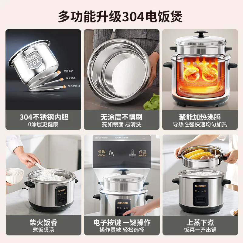 苏泊电饭煲304不锈钢0涂层家用小型2-4人3-5L老式不粘锅预约内胆