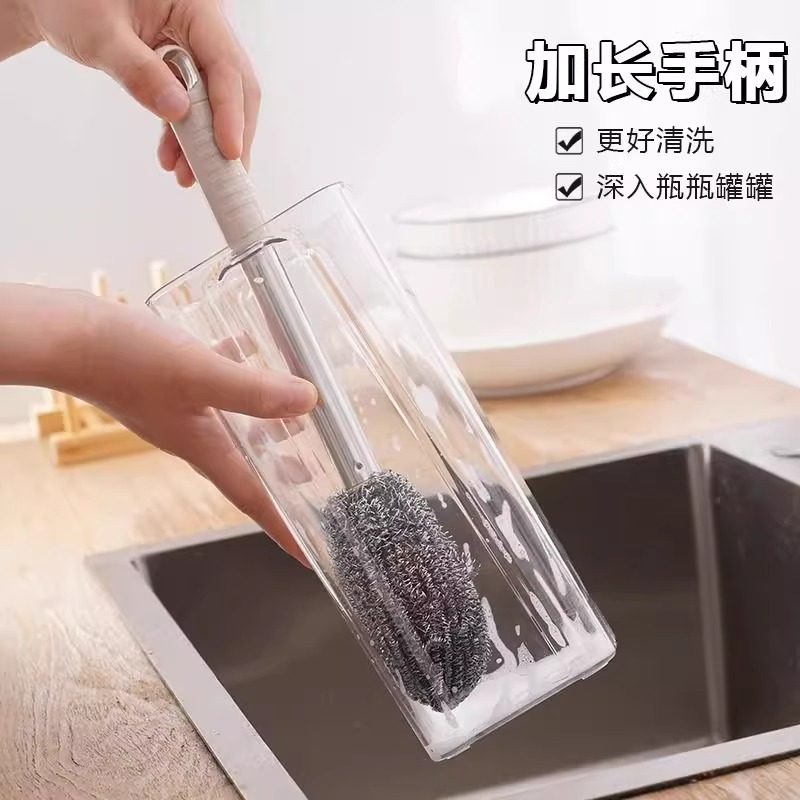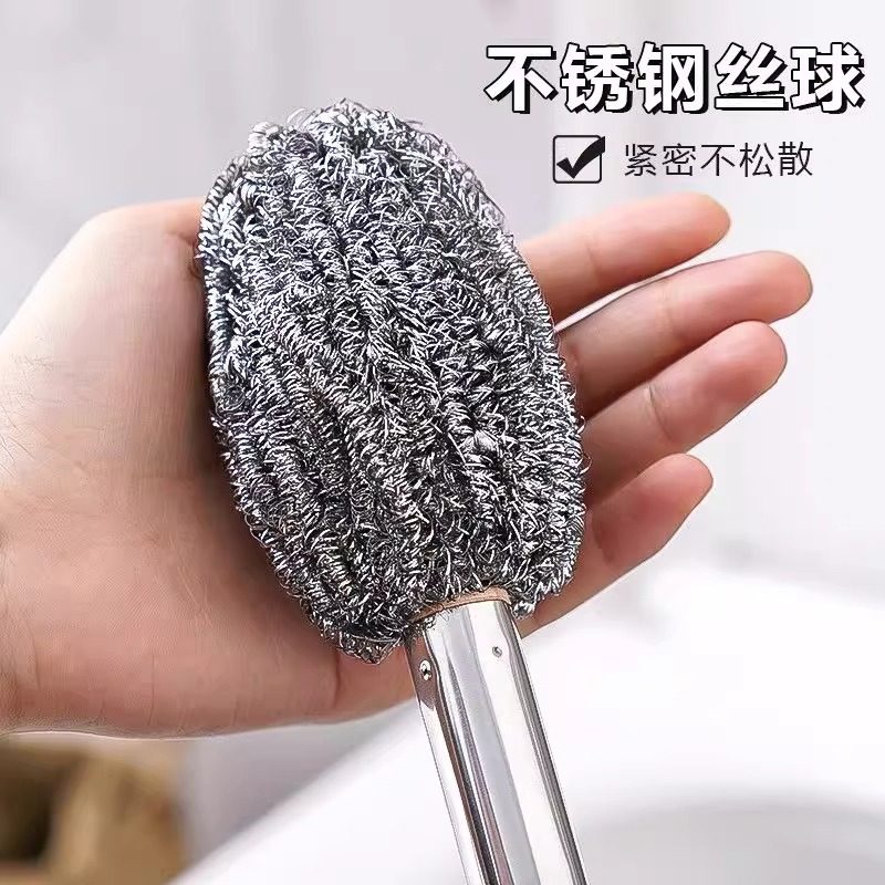 带柄钢丝球刷子长杆洗锅不生锈清洁厨房不伤手洗碗瓶罐不掉渣灶台