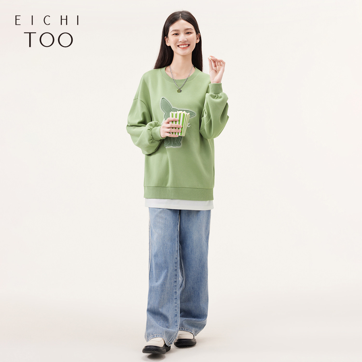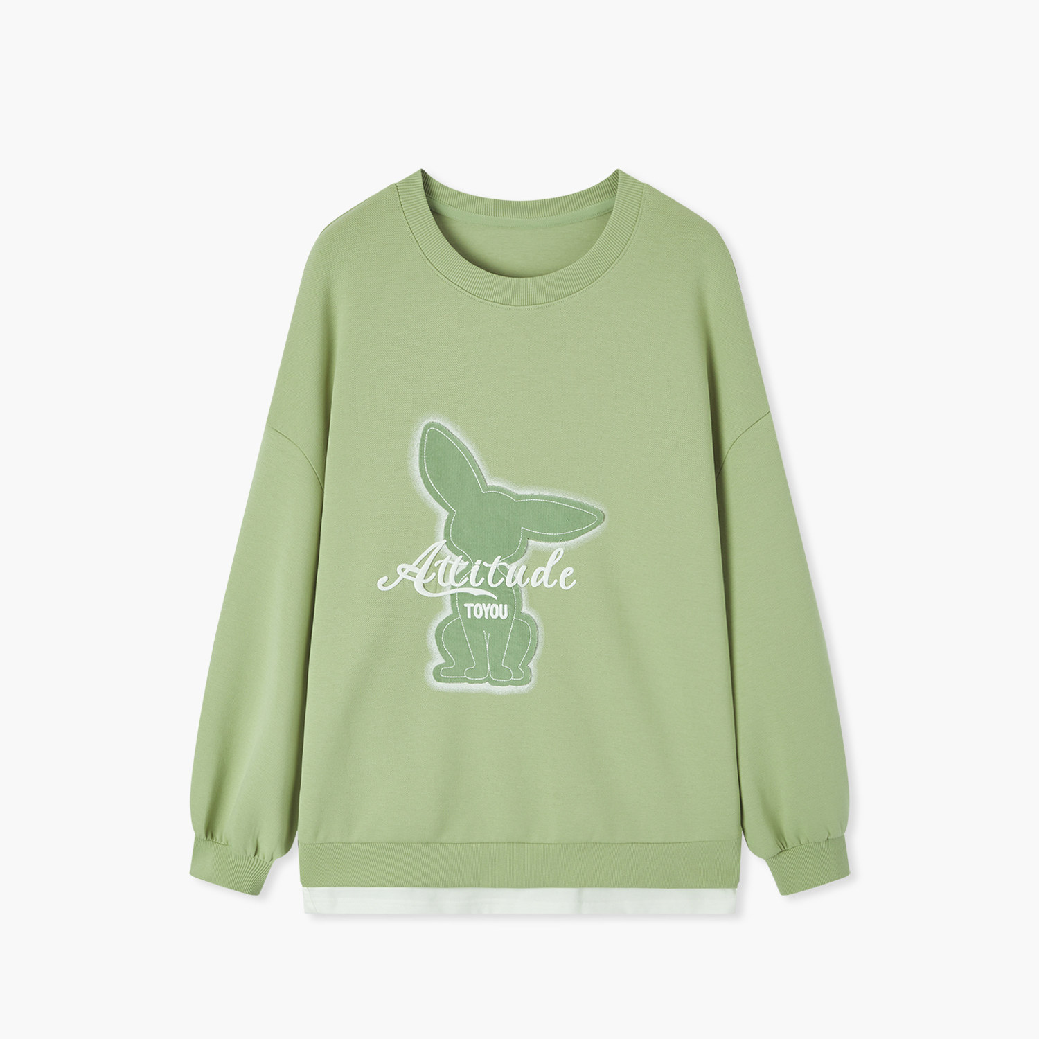 爱居兔秋季新款立体图案简约时尚宽松廓形休闲圆领卫衣女