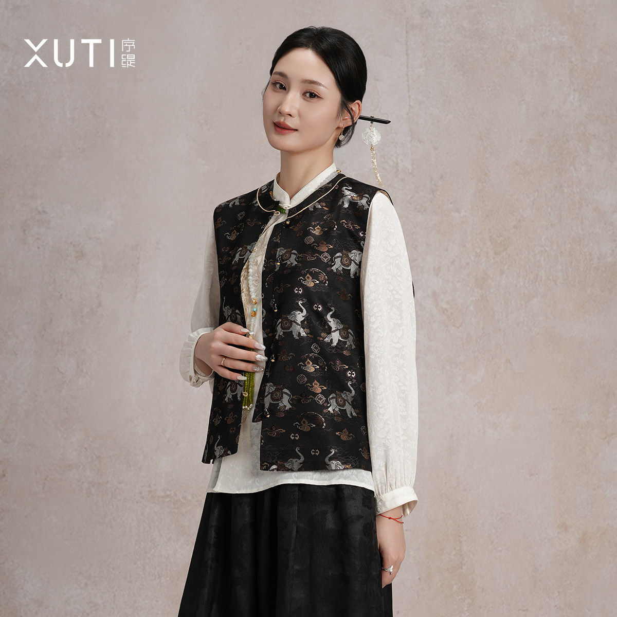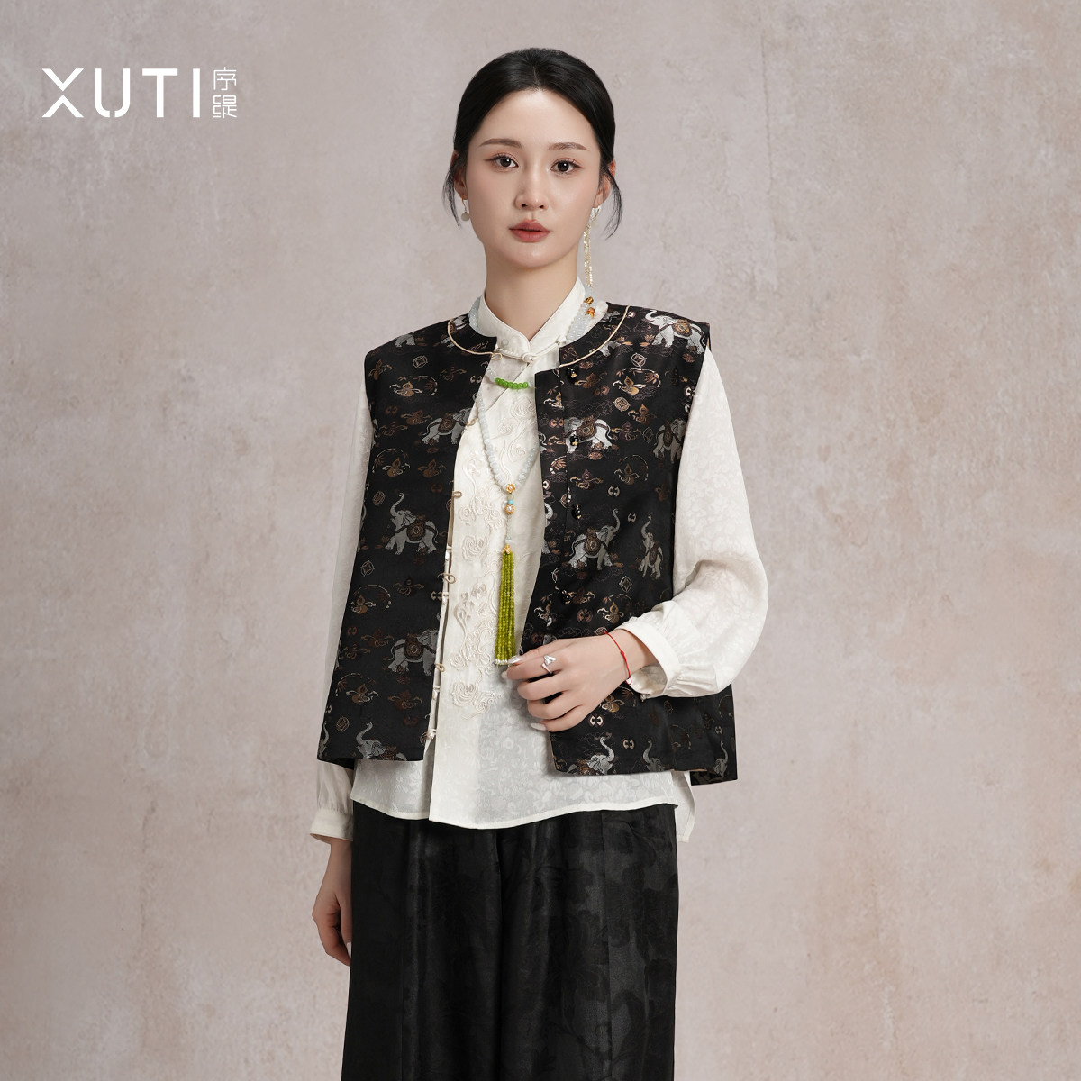 序缇质造『吉象如意』国风新中式桑蚕丝上衣马甲女春季H49-19510