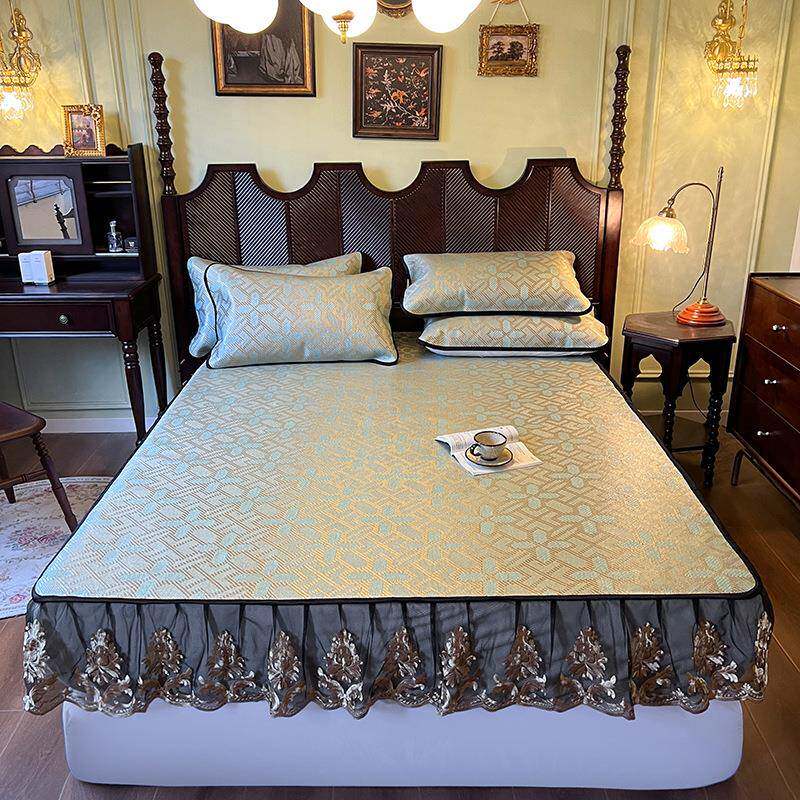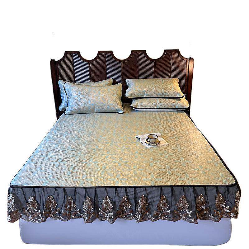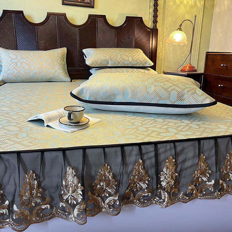 夏季新款轻奢舒适小清新家用床上用品床笠款冰藤席床席枕套三件套