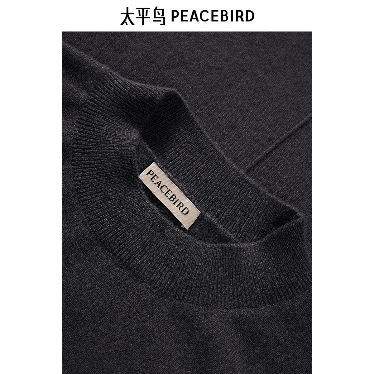 太平鸟男装 灰色修身针织衫男冬季休闲100%羊绒圆领套头毛衣男