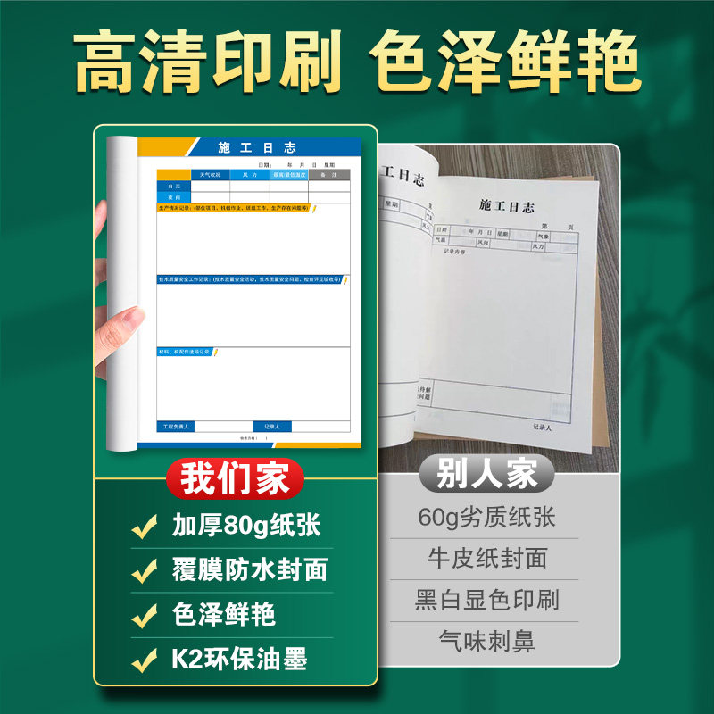 施工日志记录本建筑工程工地项目经理装修手册加厚安全监理日记本