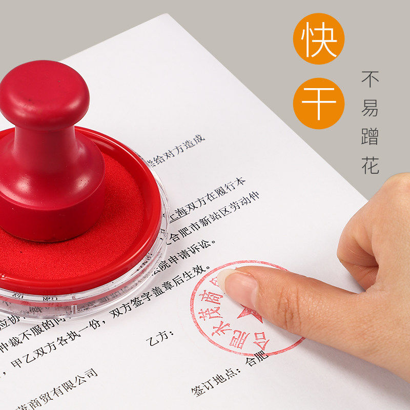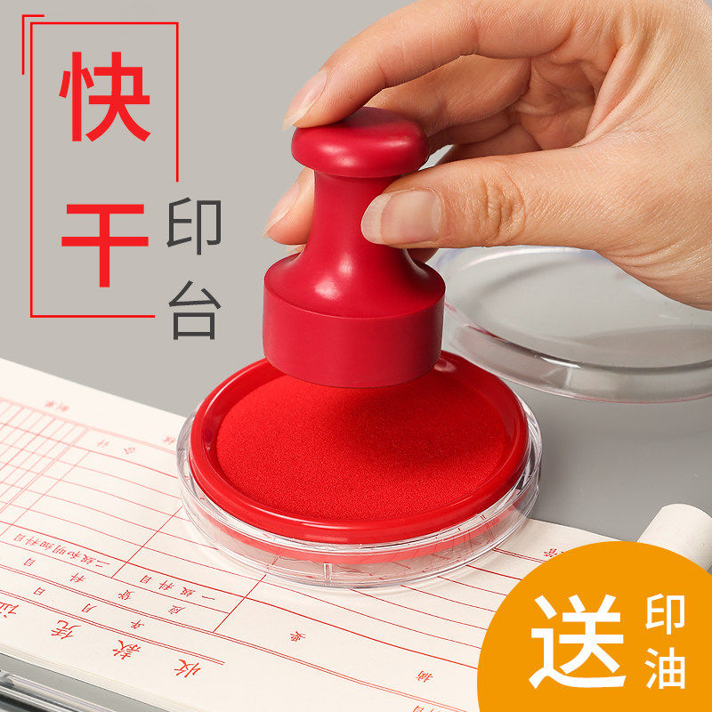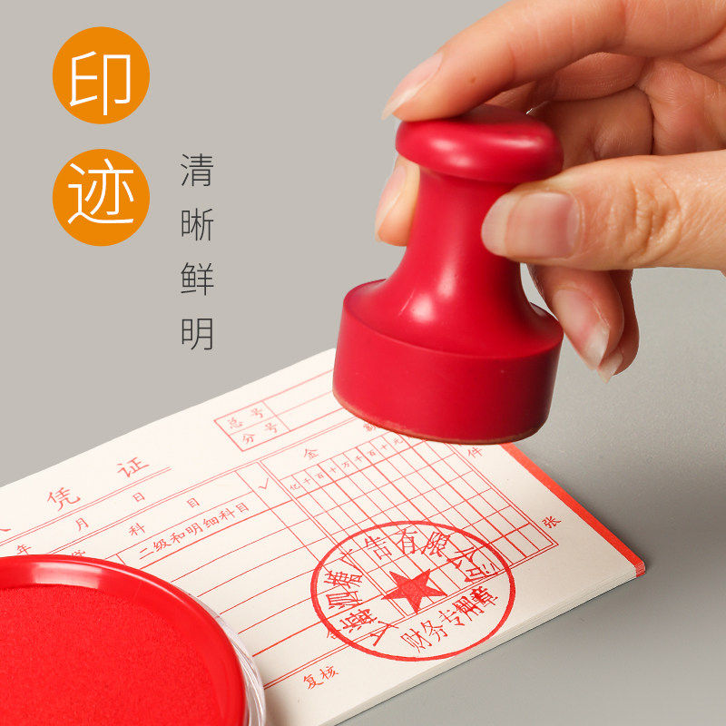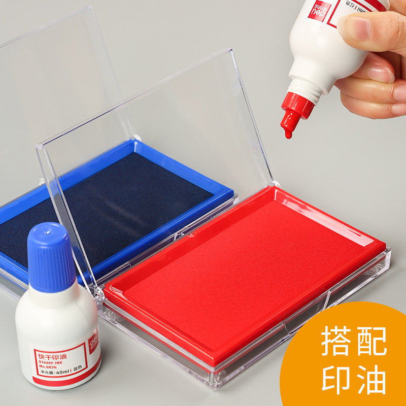 得力印泥印台红色大号圆形蓝色油性速干印尼印章泥盖章财务按手红