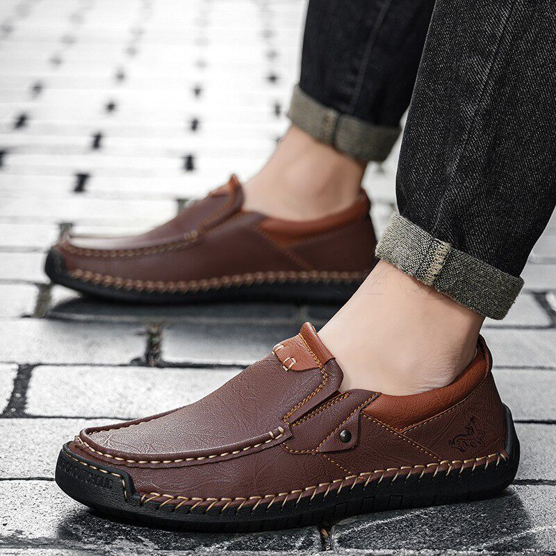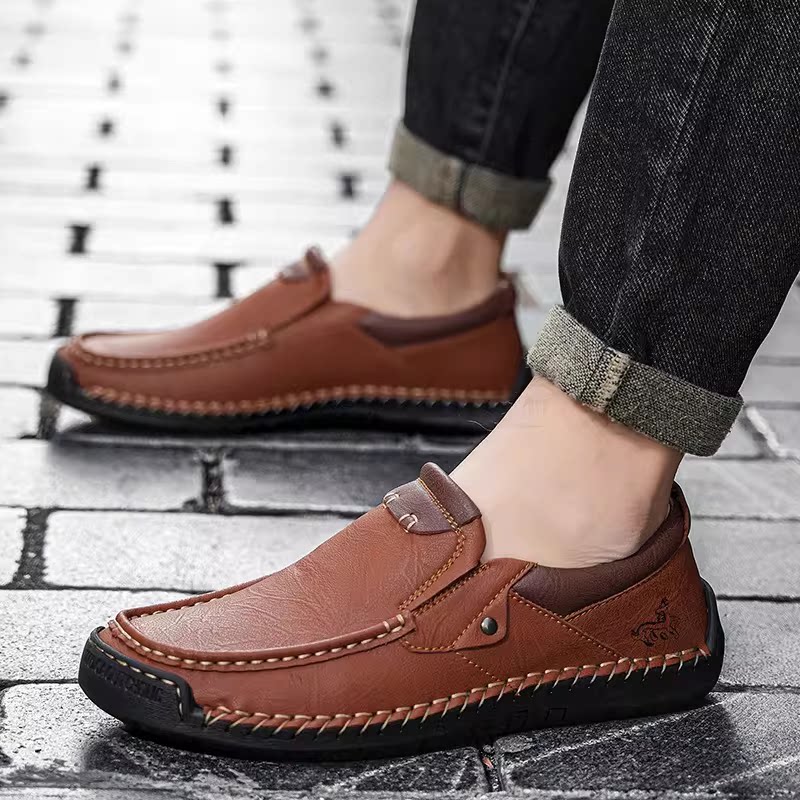 26新款潮鞋男士真皮软底手工缝线休闲皮鞋英伦百搭透气豆豆鞋新款