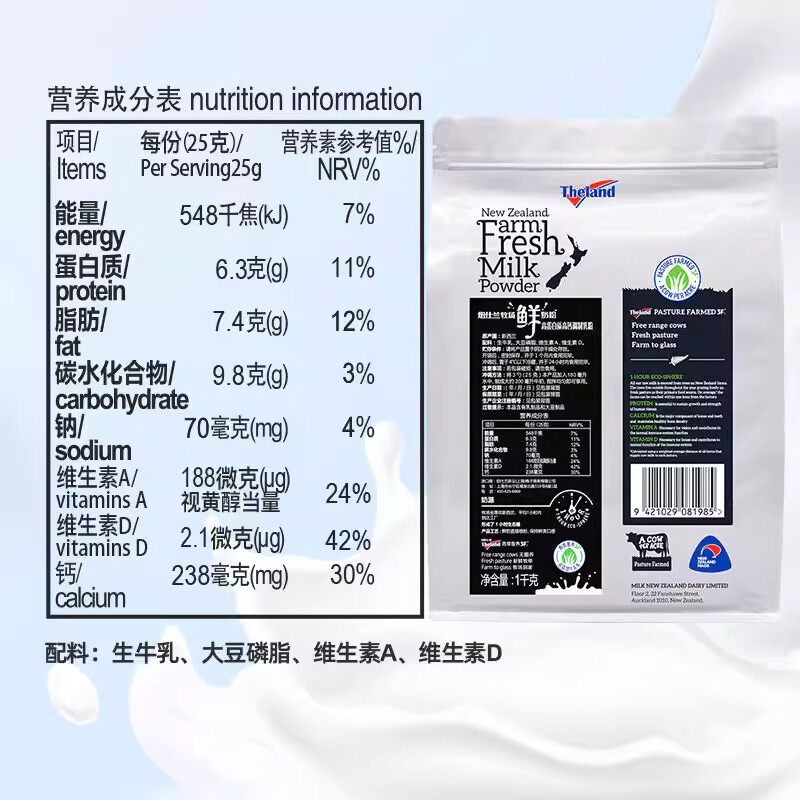 纽仕兰全脂奶粉1000g新西兰原装进口成人高钙学生牛营养早餐脱脂
