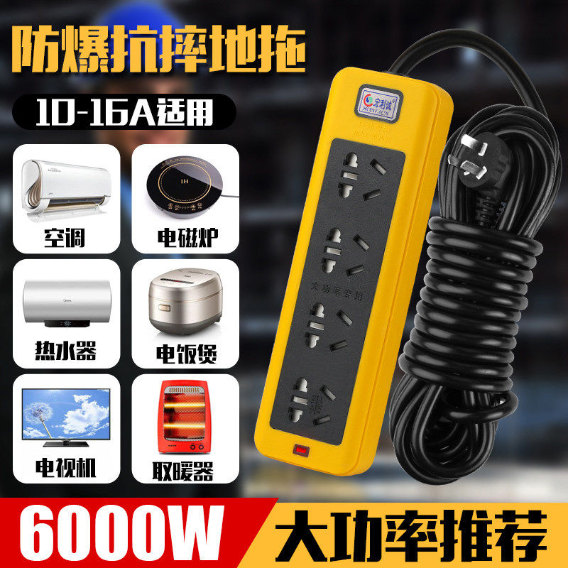 6000w大功率插排排插插座纯铜10A/16A空调家用电磁炉热水器带开关