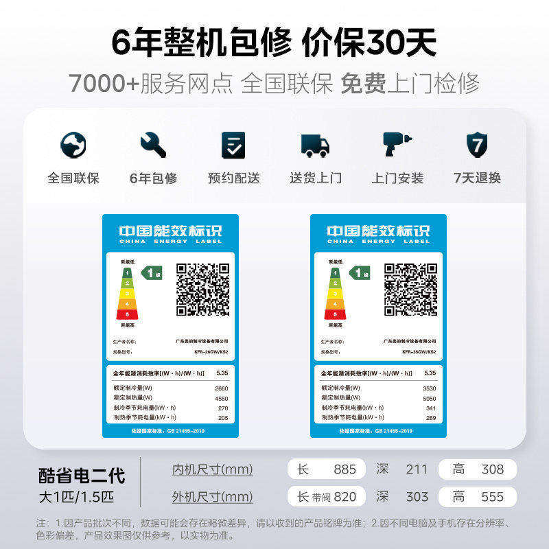 美的空调酷省电二代大1.5匹1P新一级能效变频省电挂机官方旗舰店