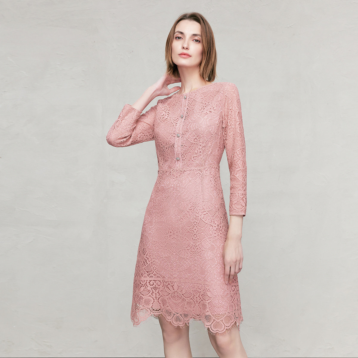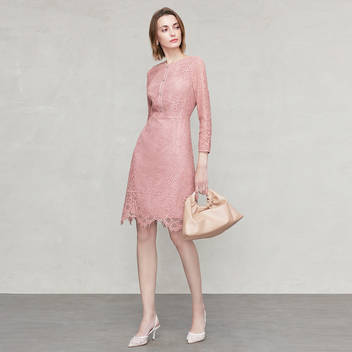 FINITY菲妮迪连衣裙2026年春季新款简约镂空设计感蕾丝优雅裙子女
