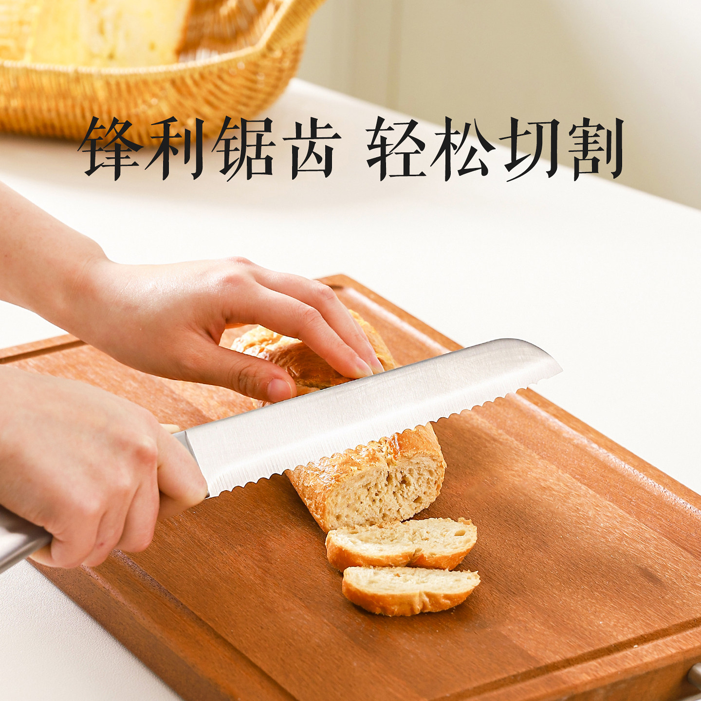 川岛屋不锈钢切面包专用刀锯齿刀切蛋糕烘焙工具厨房三明治吐司刀