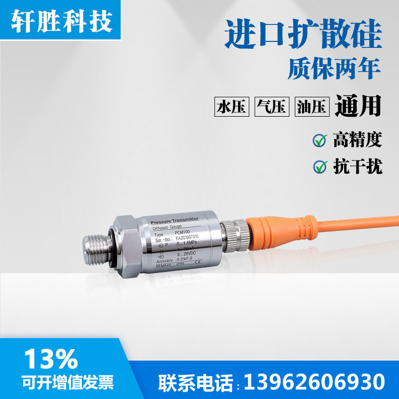 适用于PCM100 M12工业插件型压力变送器 IP67防护 4-20mA航插压力
