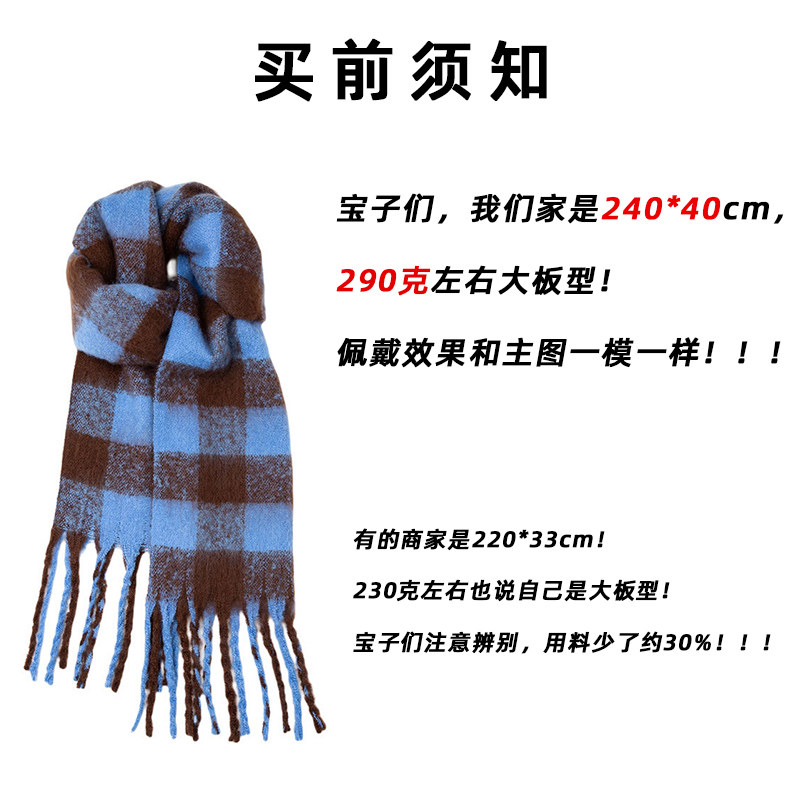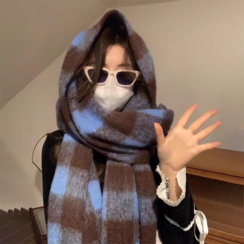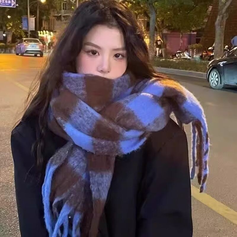 围巾女冬季韩系氛围感格子秋冬情侣学院百搭马海毛围脖仿羊绒披肩