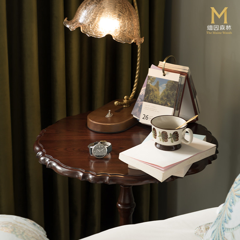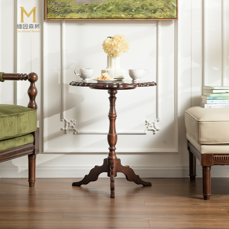 美式边几实木小圆几法式小茶几沙发角几边桌阳台茶边几复古客厅