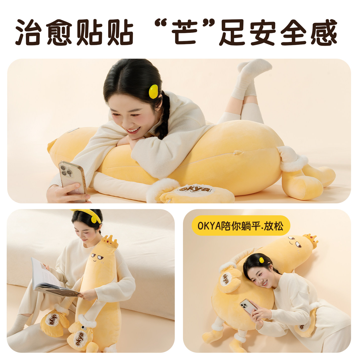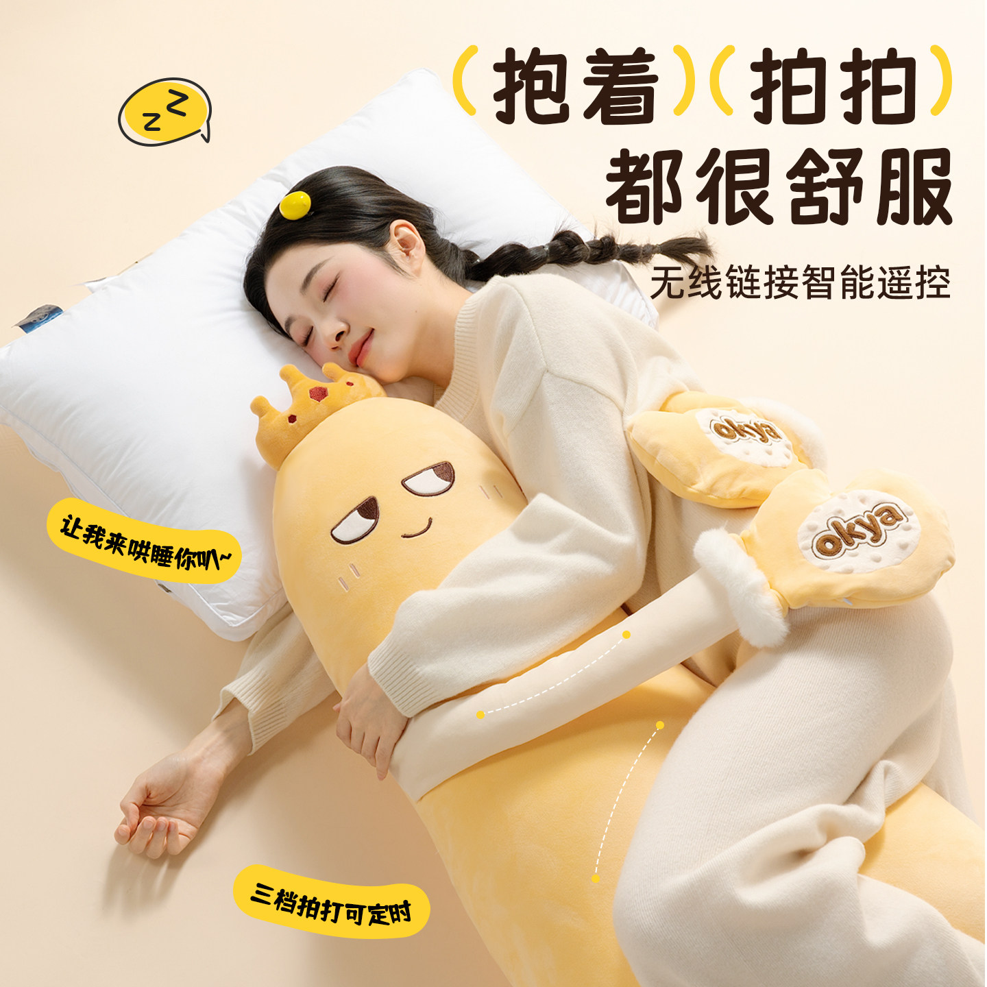 OKYA芒果哄睡大王拍打神器女生夹腿睡觉抱枕成人孕妇安抚玩偶哄睡