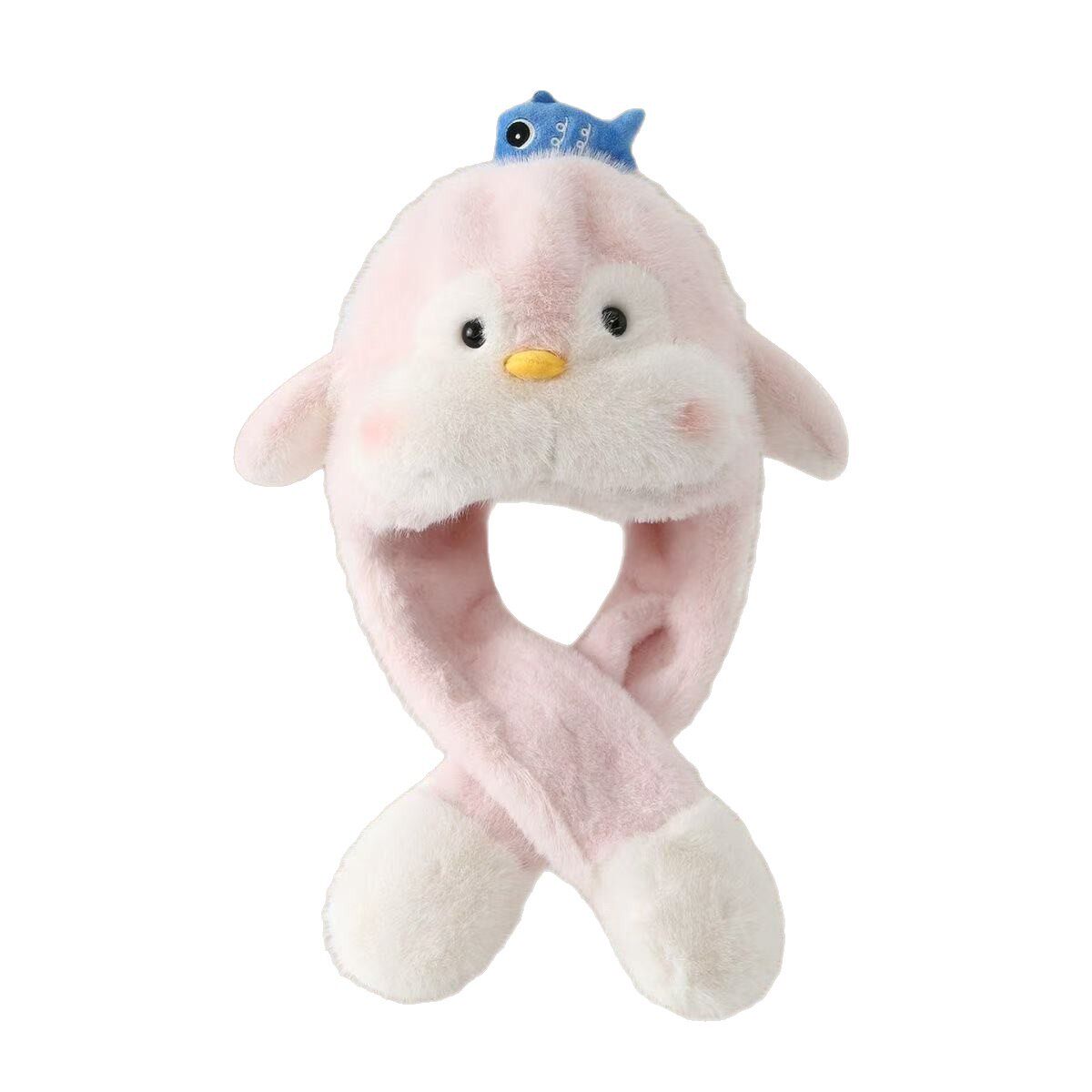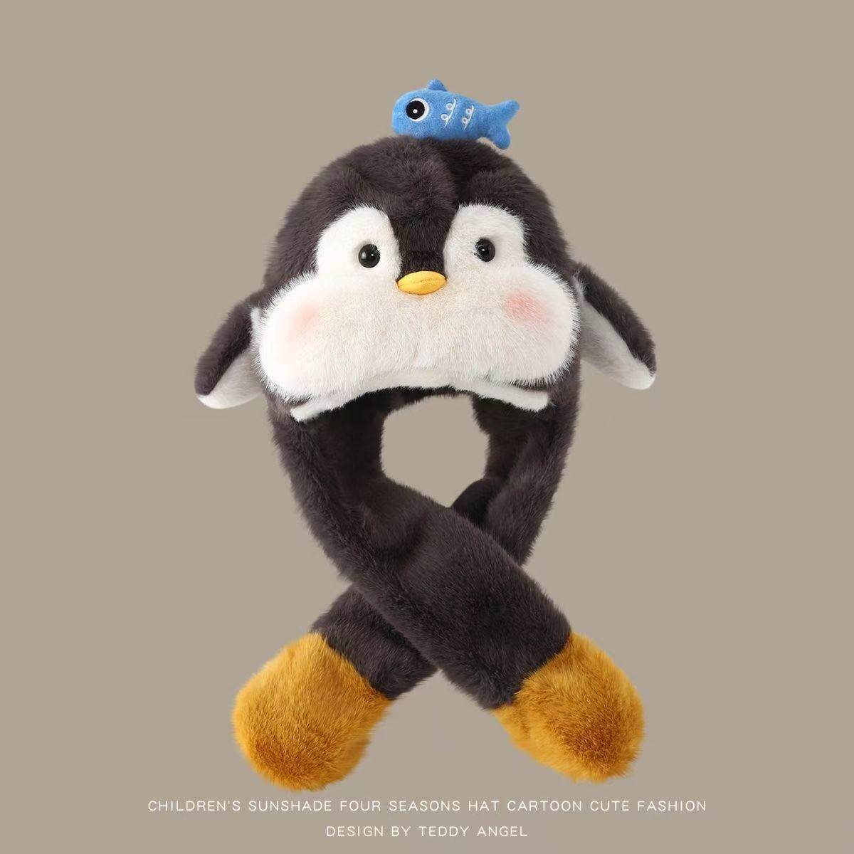 耳朵会动企鹅宝宝围脖帽子冬季超萌加厚婴儿童护耳一体套头毛绒帽