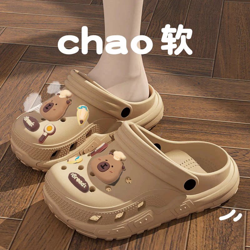 卡皮巴拉儿童洞洞鞋男童2026新款外穿防滑透气速干亲子凉拖女孩