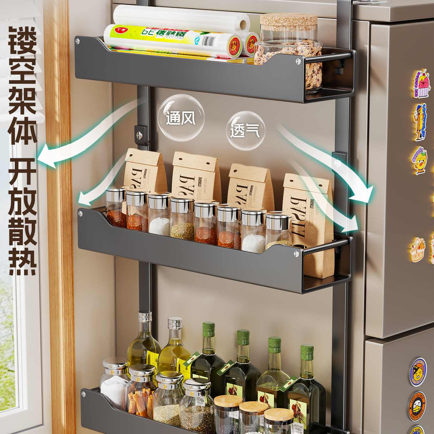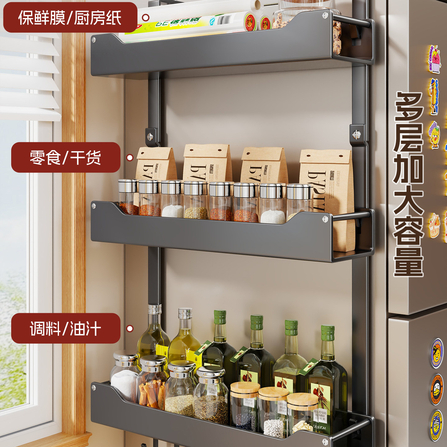 冰箱置物架侧面收纳架子壁挂调味品放置架大容量多层储物筐厨房