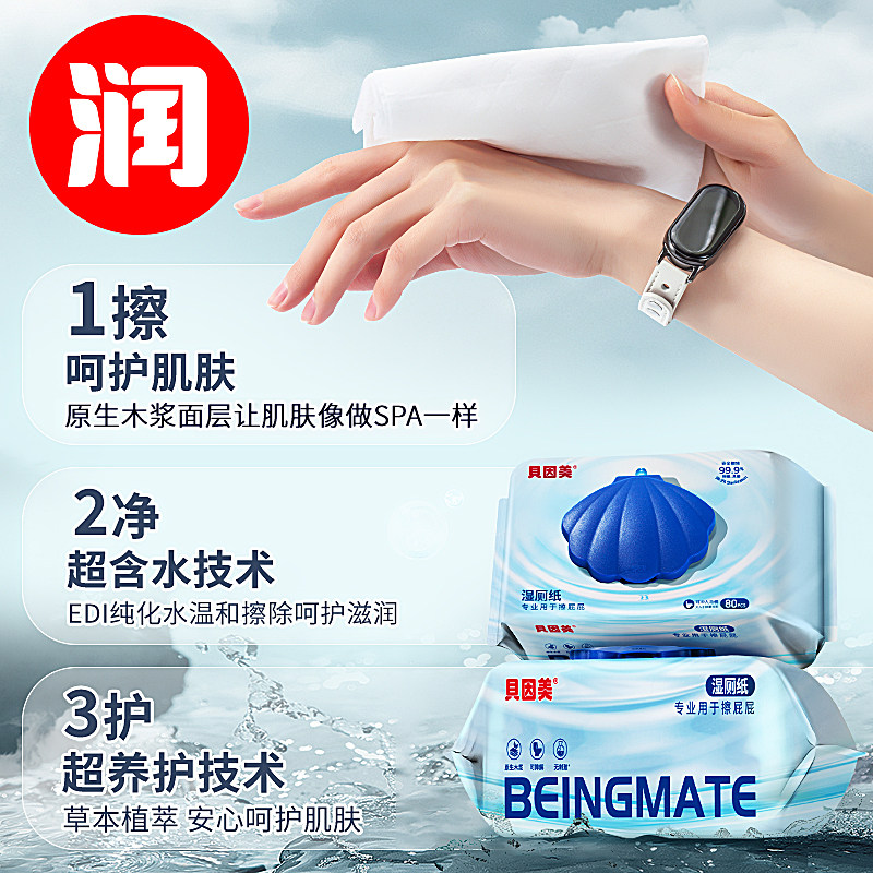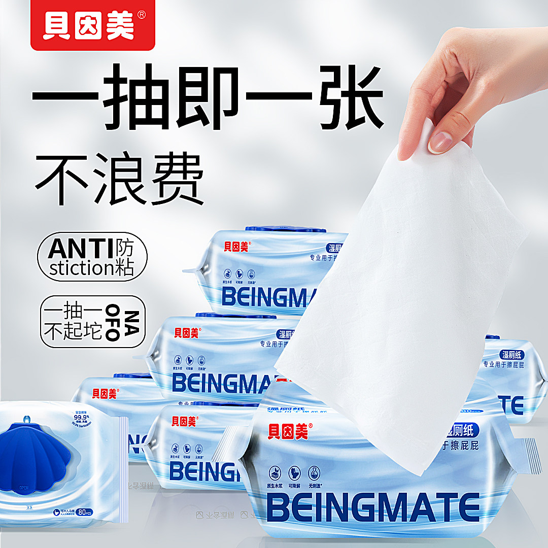 贝因美湿厕纸女性男士专用厕所湿纸巾可冲散生理期可用温和不刺激