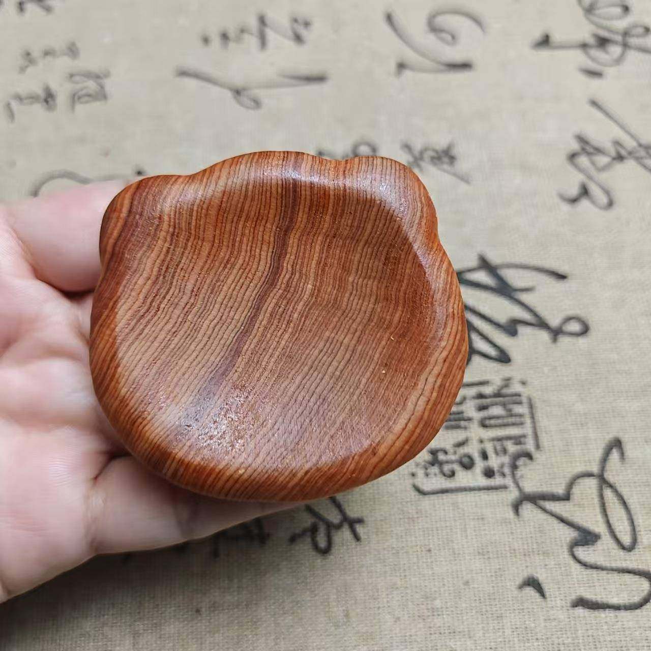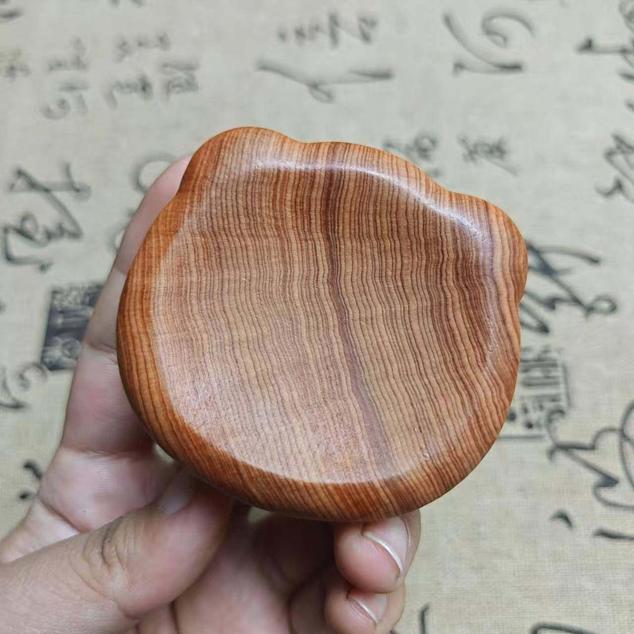 陈化崖柏木雕凹扁可爱熊头创意雕刻把玩件可爱文玩盘玩小摆件