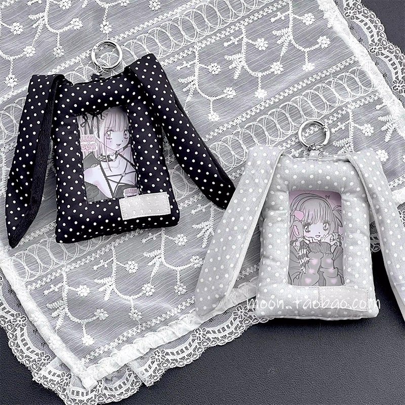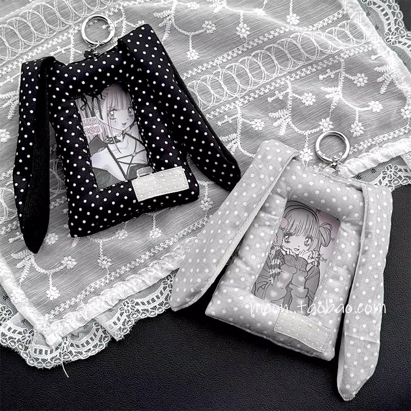 韩系兔耳波点卡套ins风追星3寸小卡拍立得校园卡饭卡收纳书包挂件