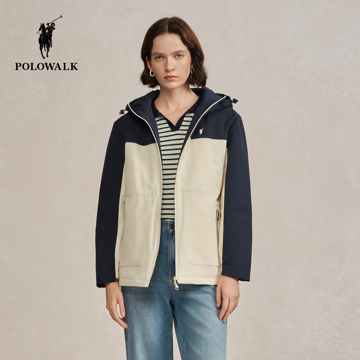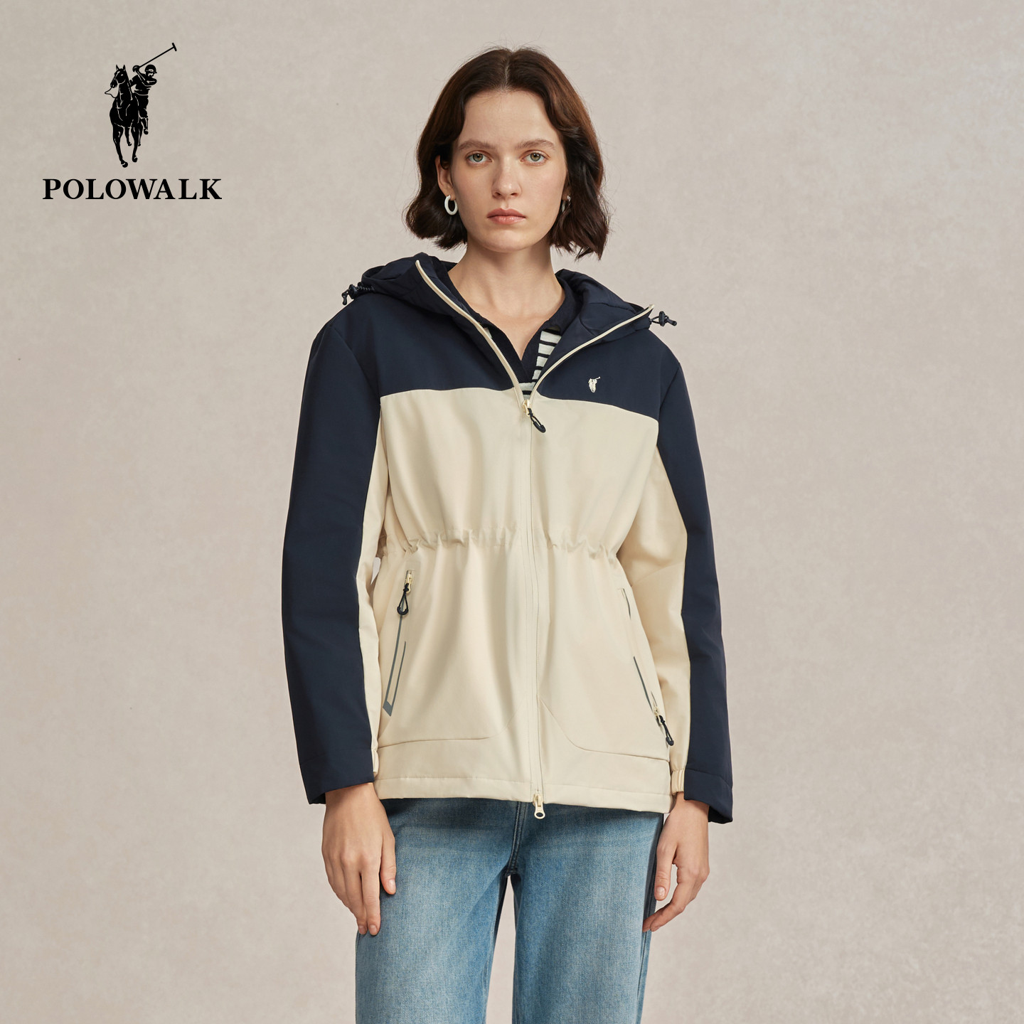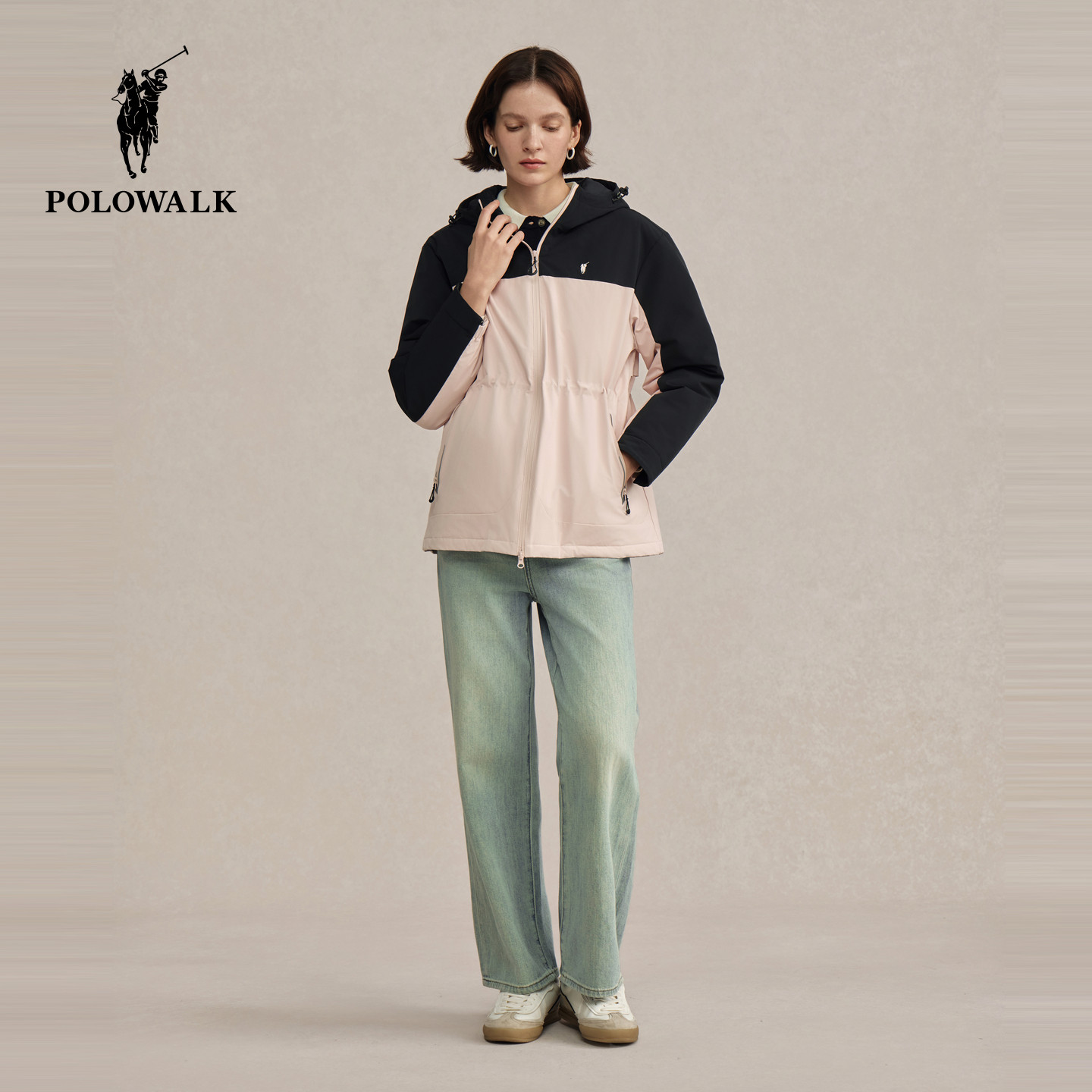 POLOWALK女装羽绒服2025冬装女士羽绒服连帽保暖通勤外套收腰上衣