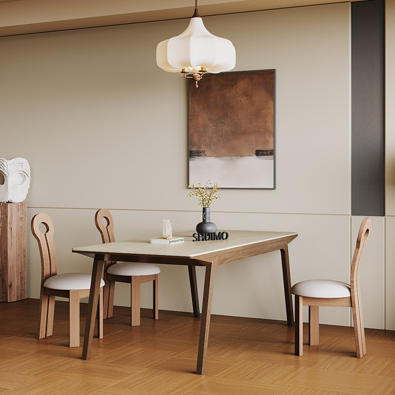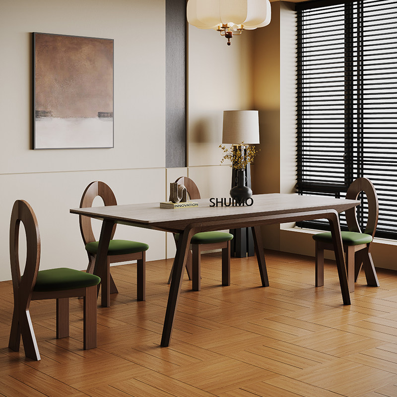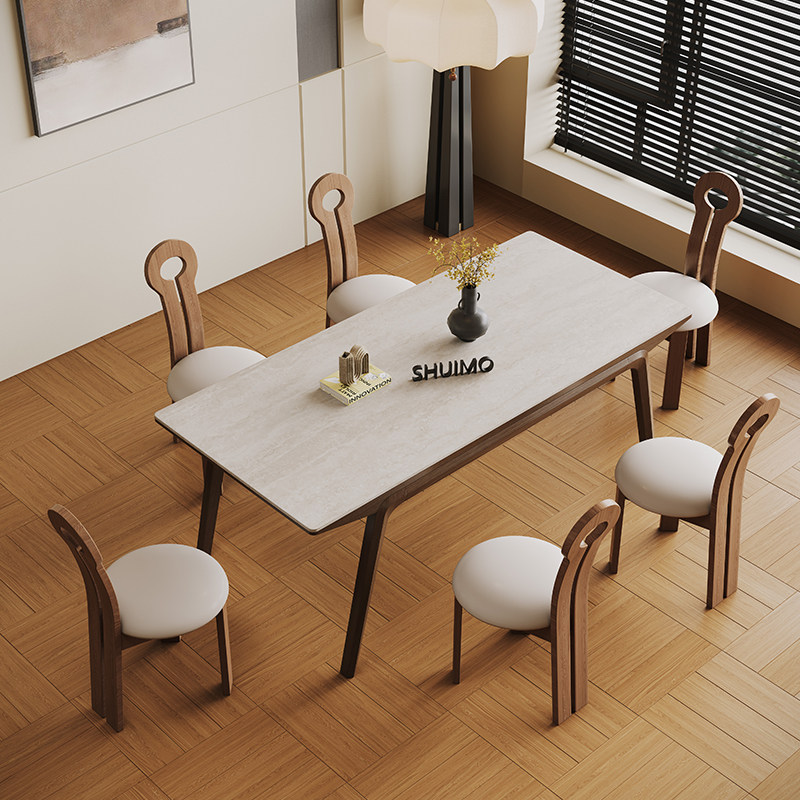 德利丰洞石帆船实木餐桌法式奶油复古现代简约意式胡桃色餐桌椅子