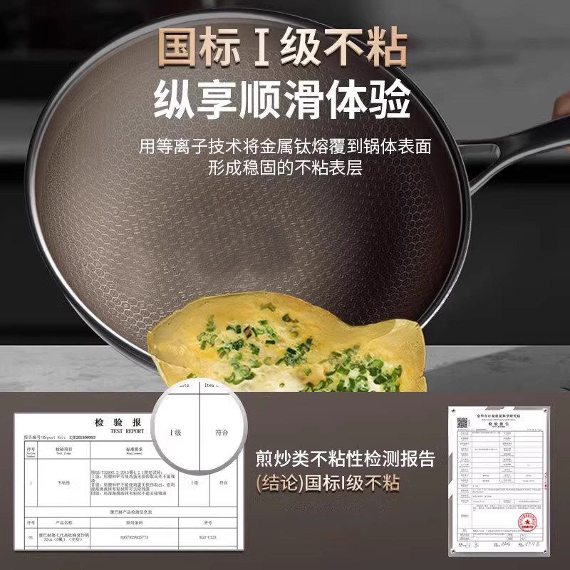 【新品】康巴赫七代真钛蜂窝锅家用无涂层炒锅不锈钢不粘锅炒菜锅