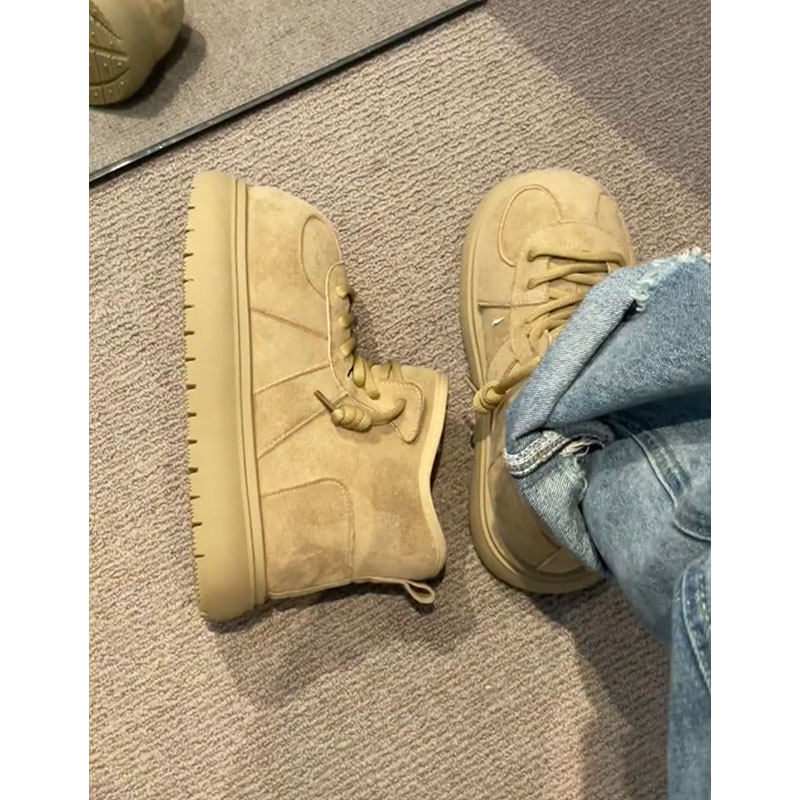 miu家厚底雪地靴女冬季真皮短靴羊毛侧拉链增高厚底加绒毛毛棉鞋