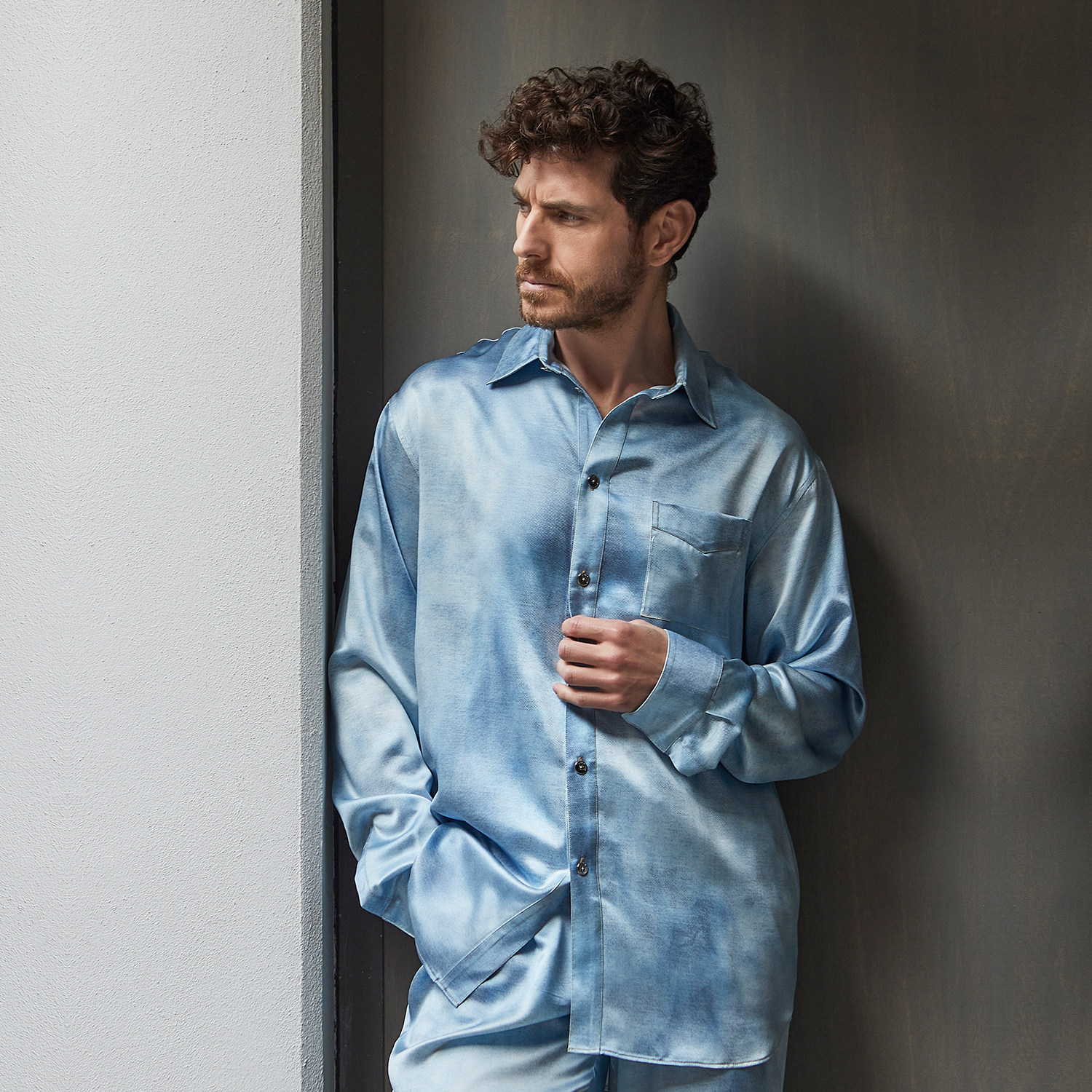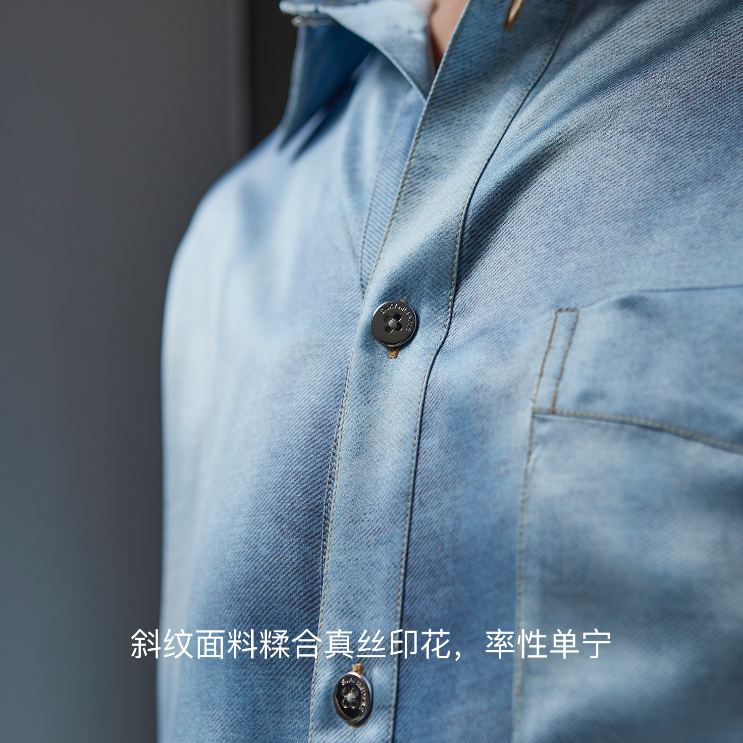 SILKY MIRACLE男士真丝睡衣JEANS牛仔桑蚕丝家居服套装时髦可外穿