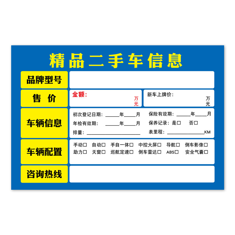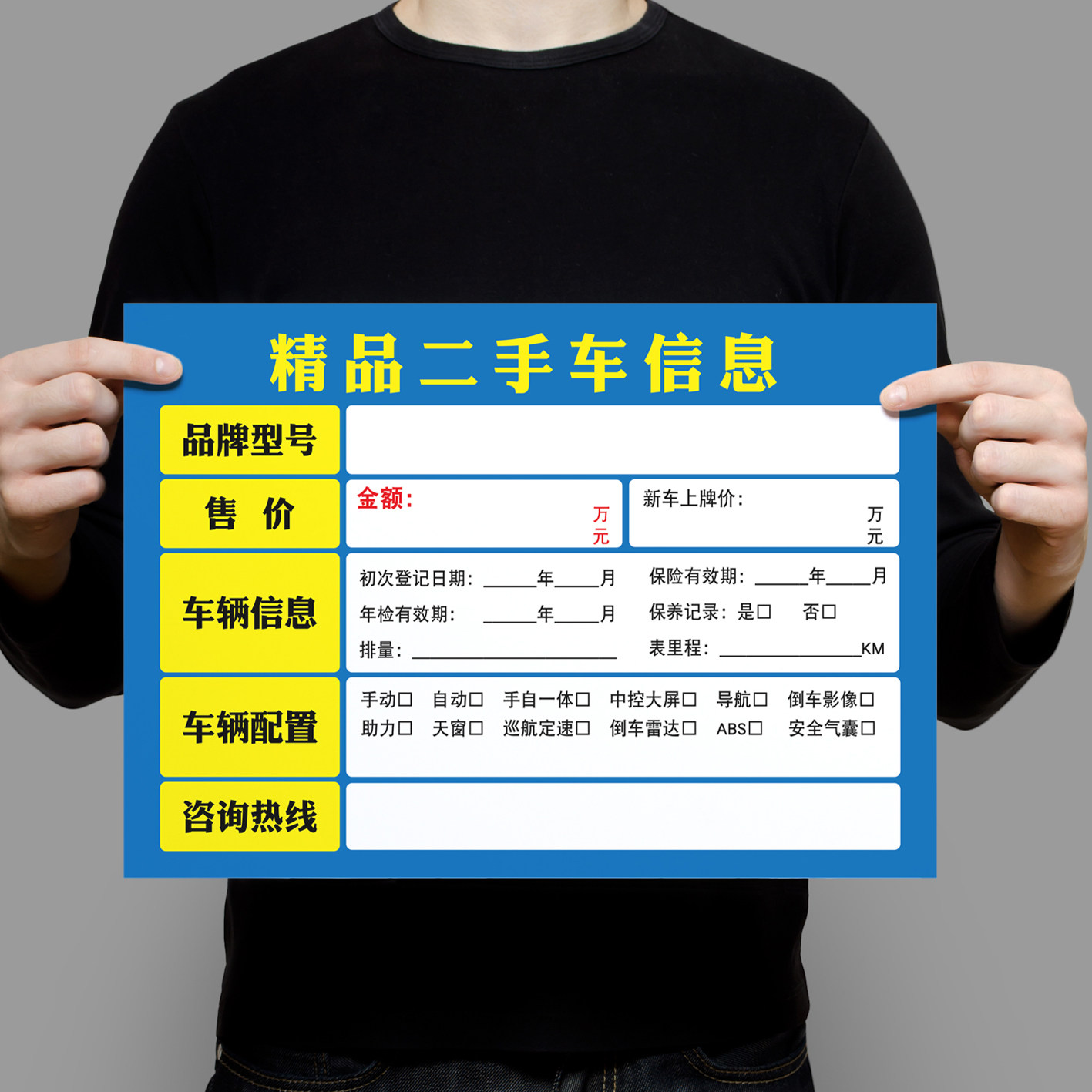 A3二手车信息展示牌车商广告纸车辆信息表手写pop海报价格牌