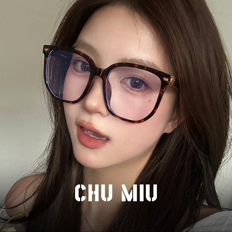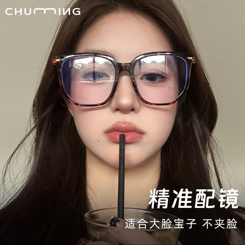 复古玳瑁色超大框眼镜女可配近视度数素颜神器显脸小豹纹眼睛镜架