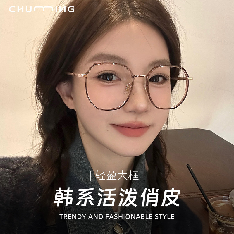超轻眼镜女可配近视度数冷茶色素颜神器大框显脸小眼睛方圆脸镜架