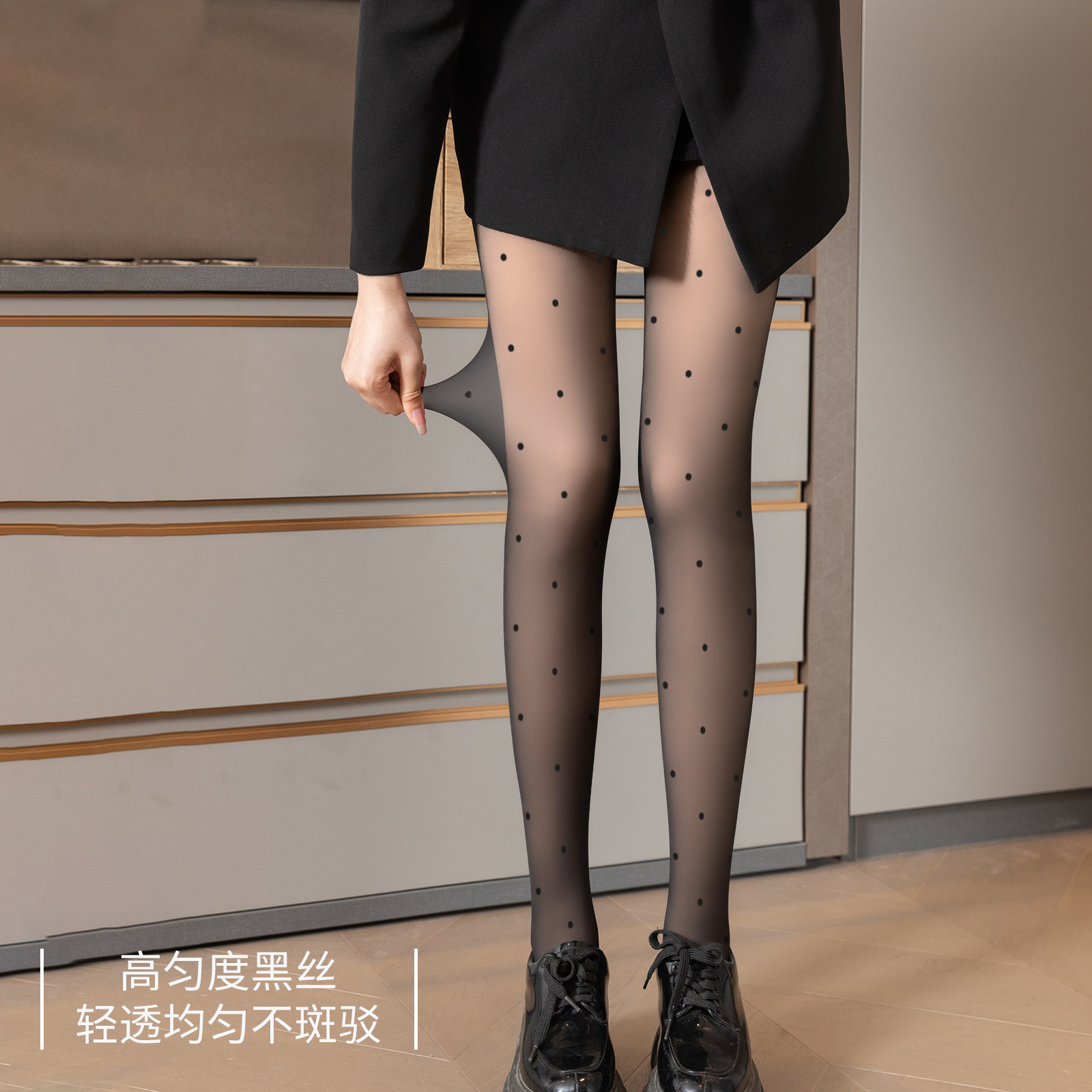 波点黑丝袜女春秋超薄款防勾丝性感黑色光腿神器不掉档打底连裤袜