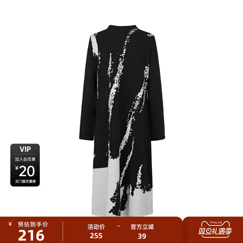 sdeer圣迪奥女装罗纹圆领晕染印花宽松连衣裙S234Z1285