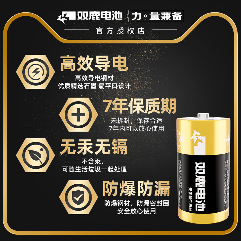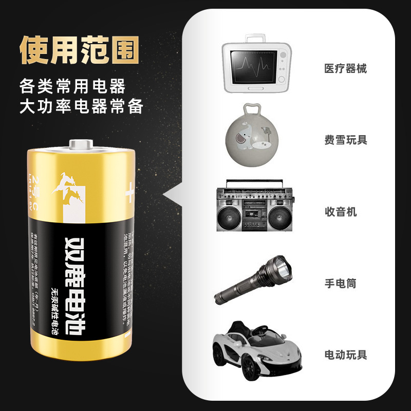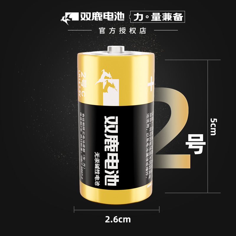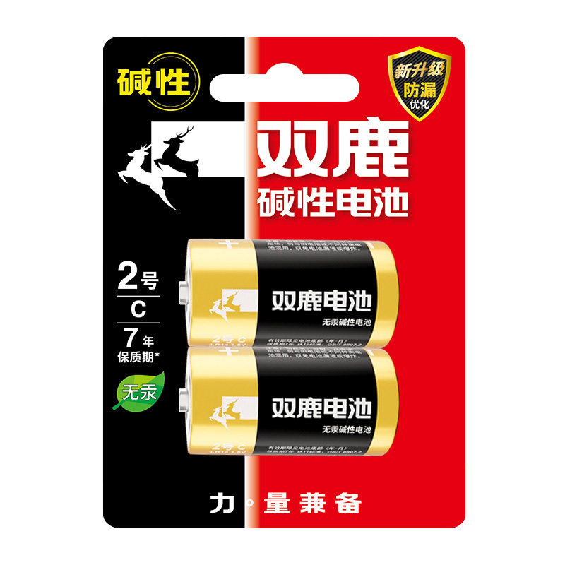 双鹿2号2节电池C型LR14碱性二号面包超人花洒摇椅费雪玩具收音机手电筒中号通3号三号1.5v干电池2粒批发