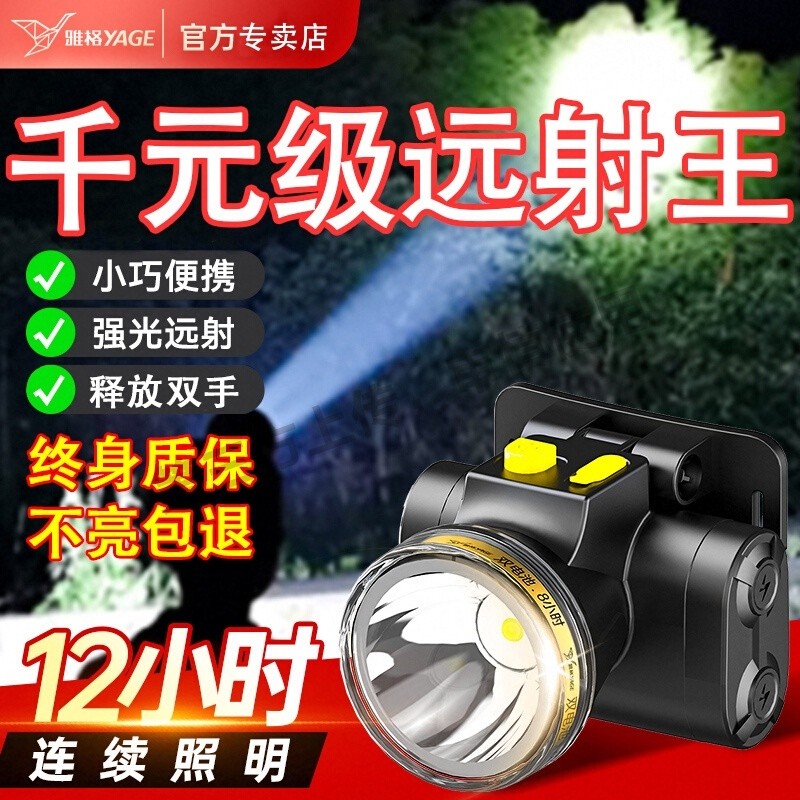 雅格头灯强光充电超亮头戴式照明灯电筒户外2023新款超级特亮矿灯