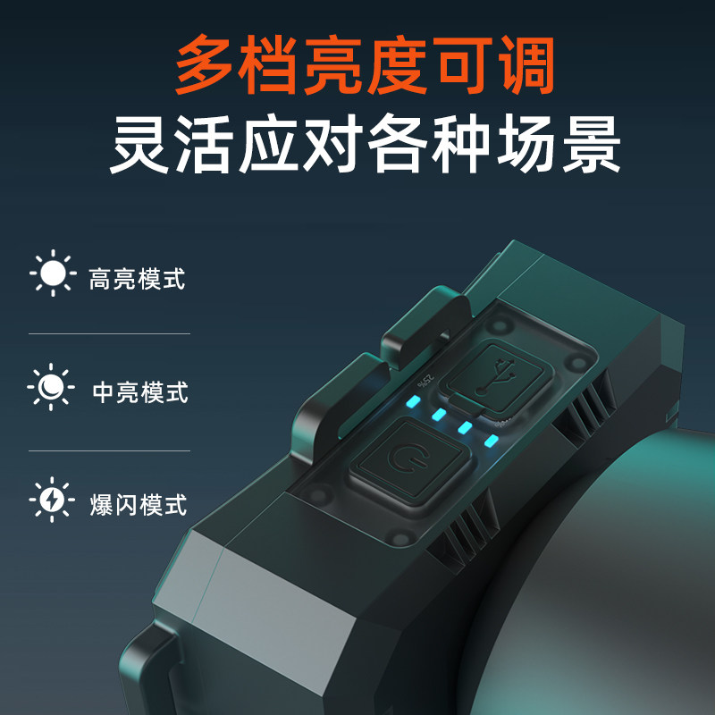 沃尔森夜钓头灯超长续航钓鱼专用感应帽夹灯强光超亮充电头戴夹帽
