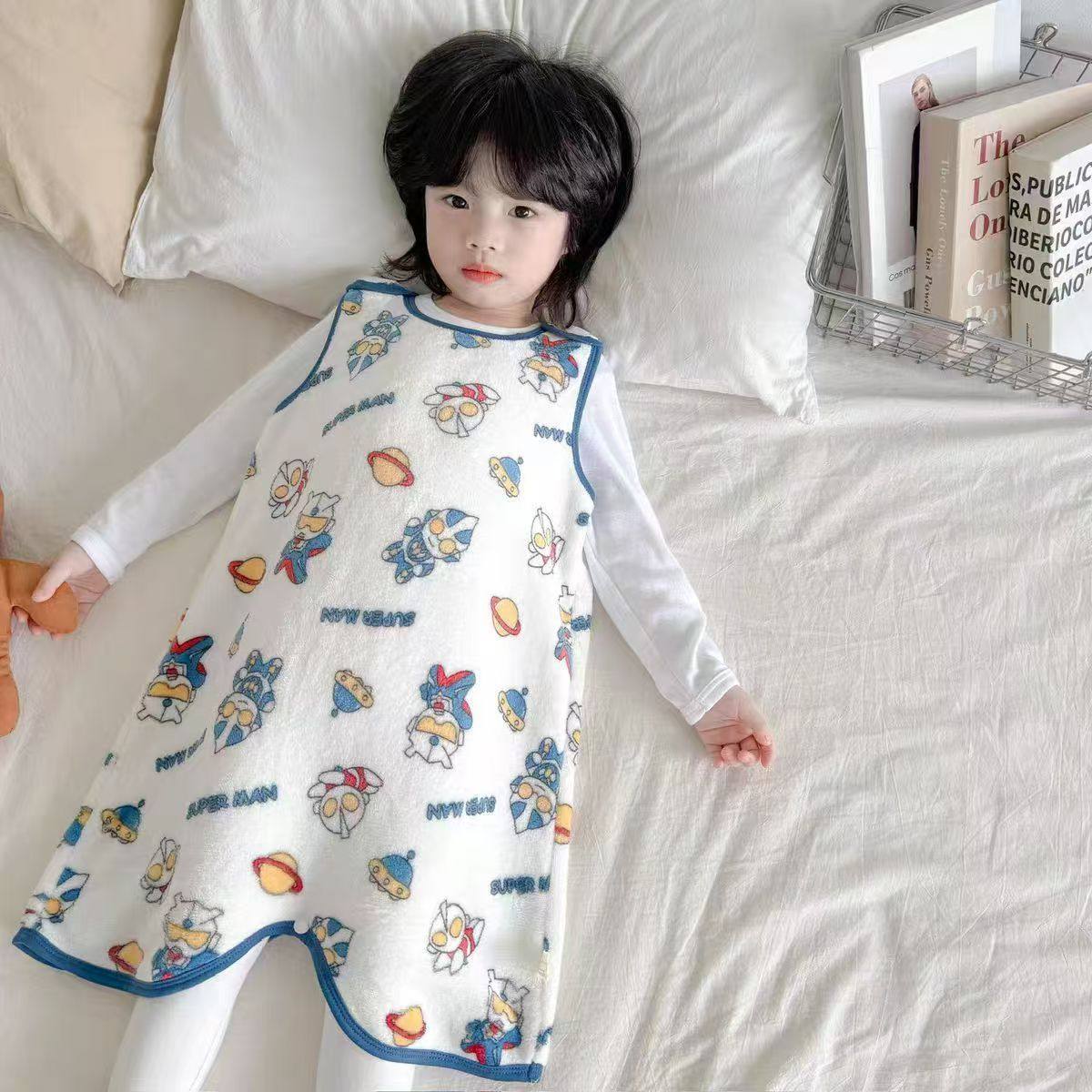 法兰绒睡袋婴儿背心防踢被睡衣春秋儿童宝宝无袖连身马甲护肚保暖