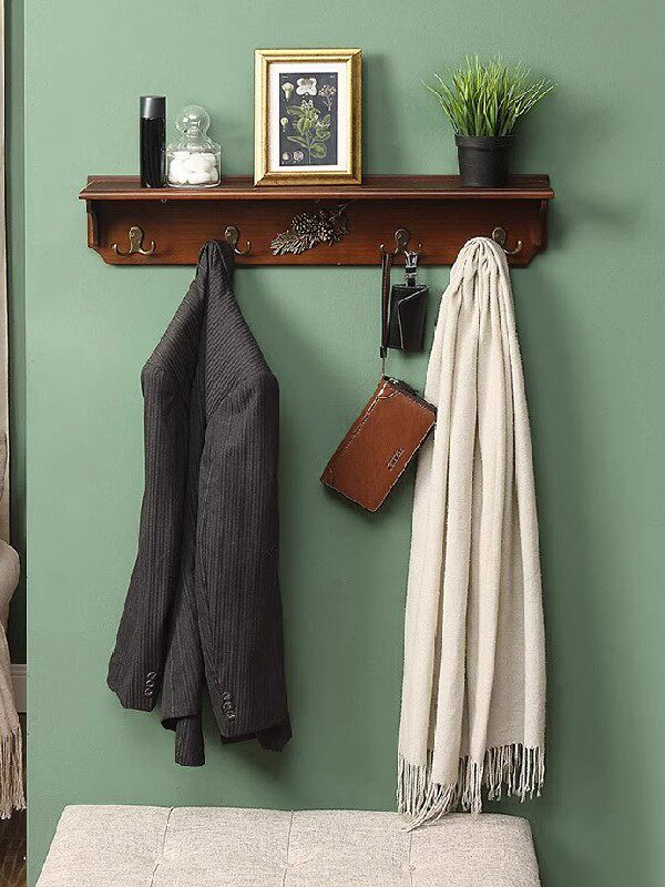 玄关衣帽钩客厅卧室墙上挂衣架实木搁板壁挂式挂钩隔板置物架美式